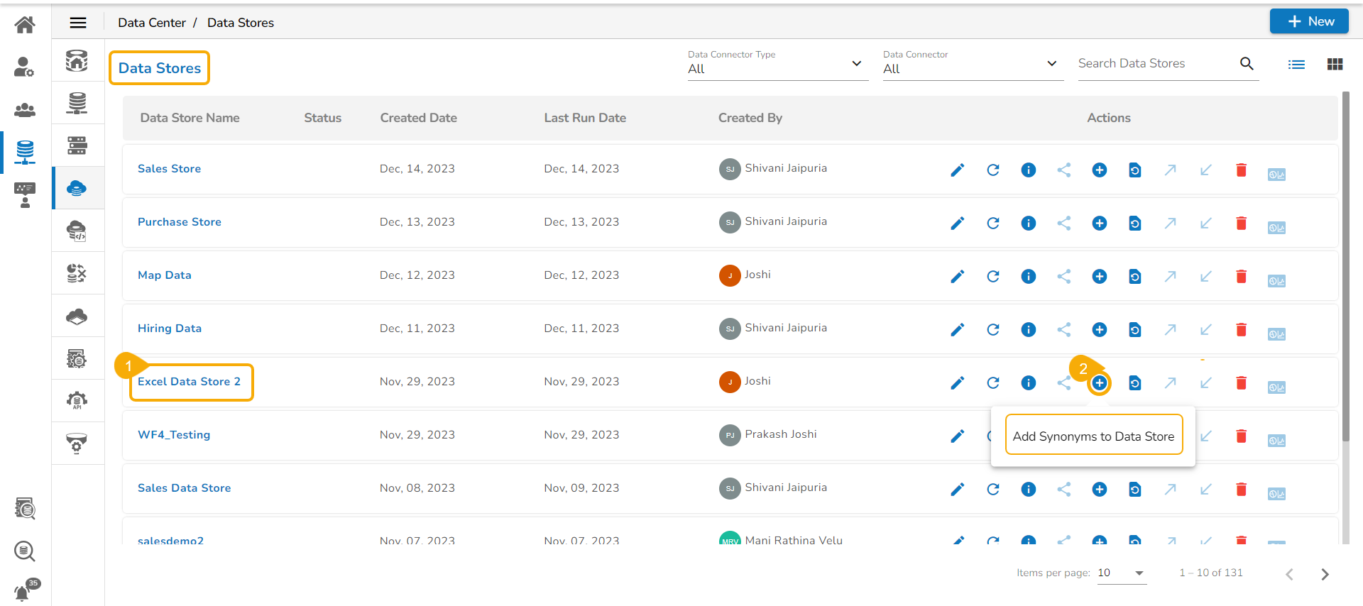 Adding Synonyms to a Data Store