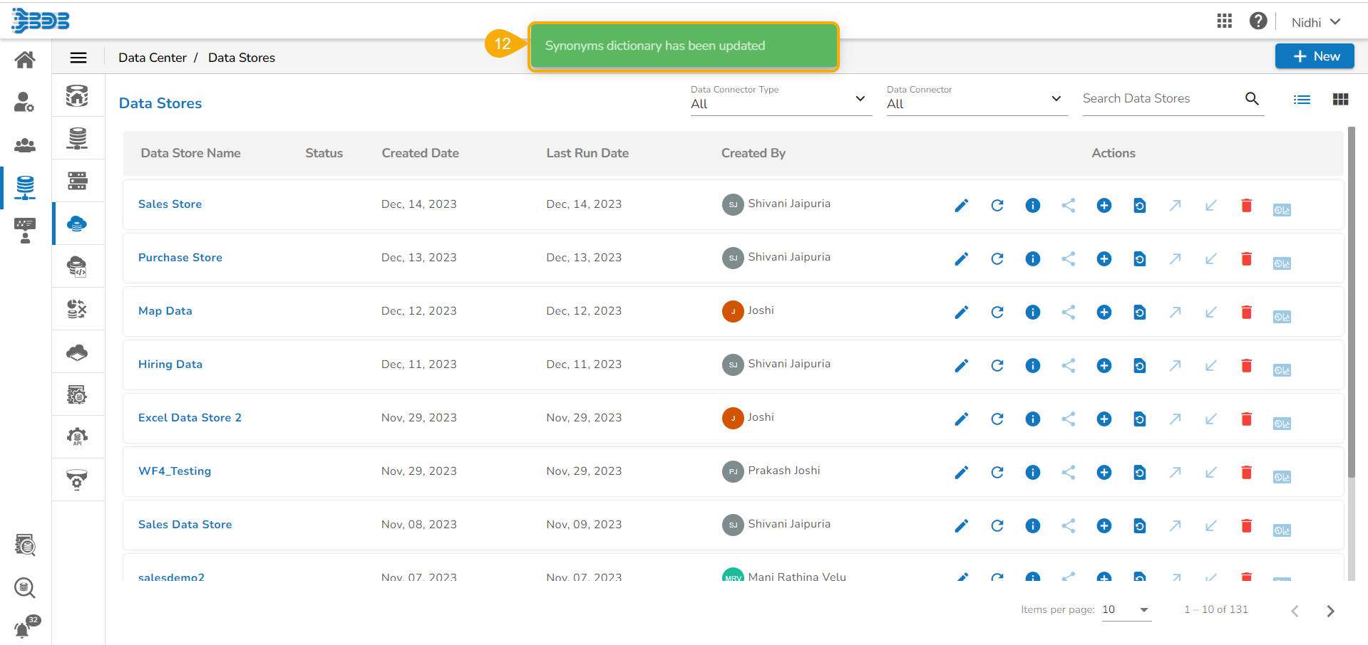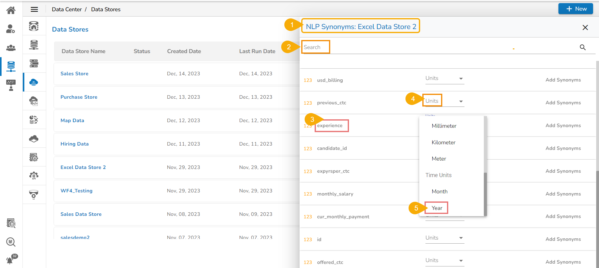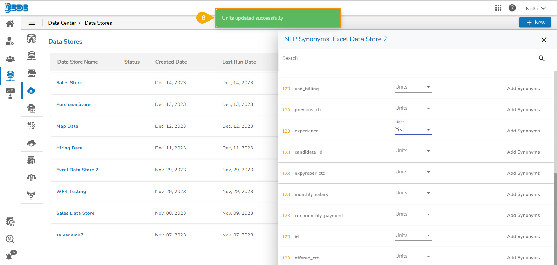 Navigate to the NLP Synonyms window for a data store.
