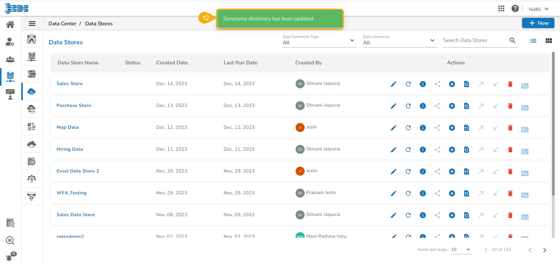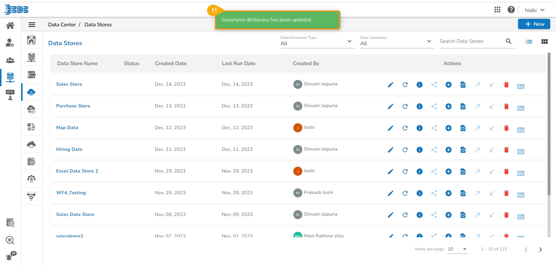 A success message appears to assure that the synonym dictionary is updated with the newly added synonym.