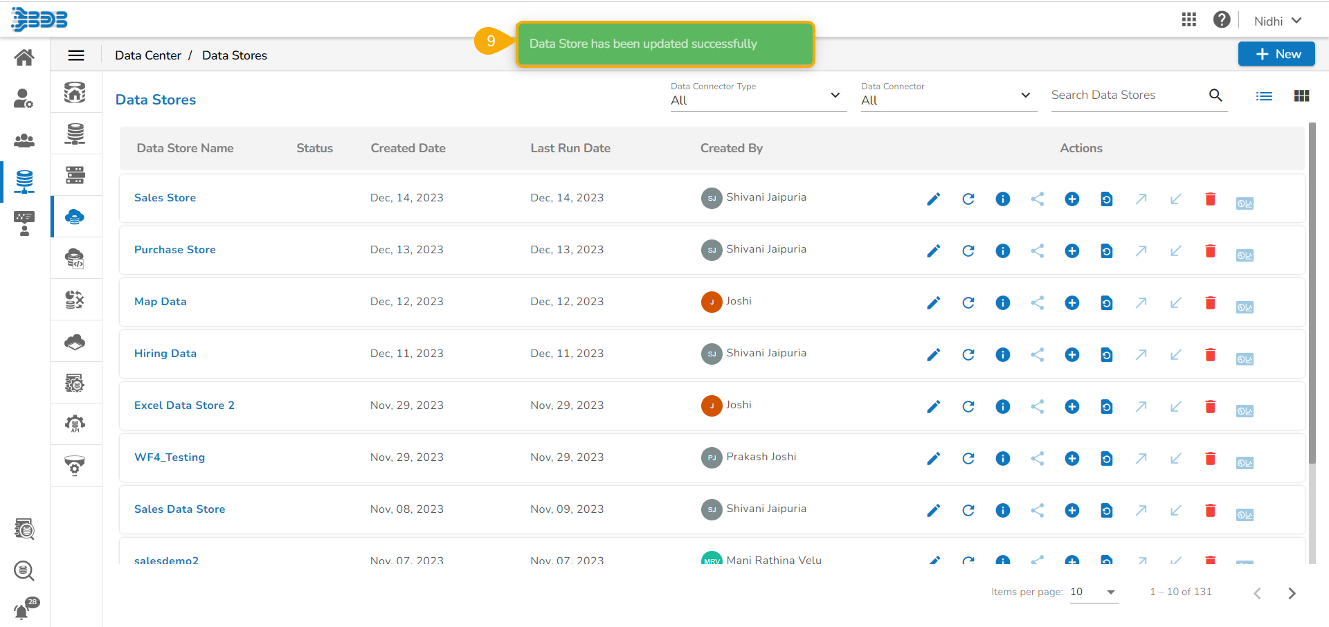 A confirmation message appears, and the selected Data Store gets updated.