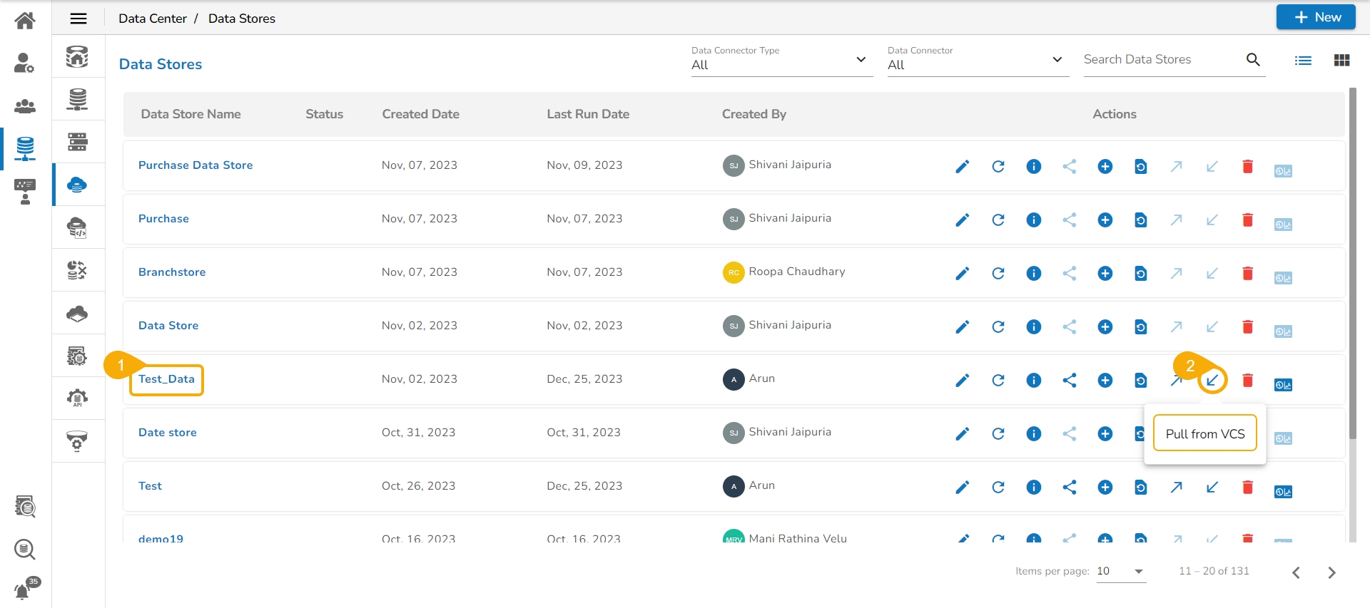 Select a Data Store from the Data Stores list (The Data Store should ne Pushed at least once to the GIT repository).