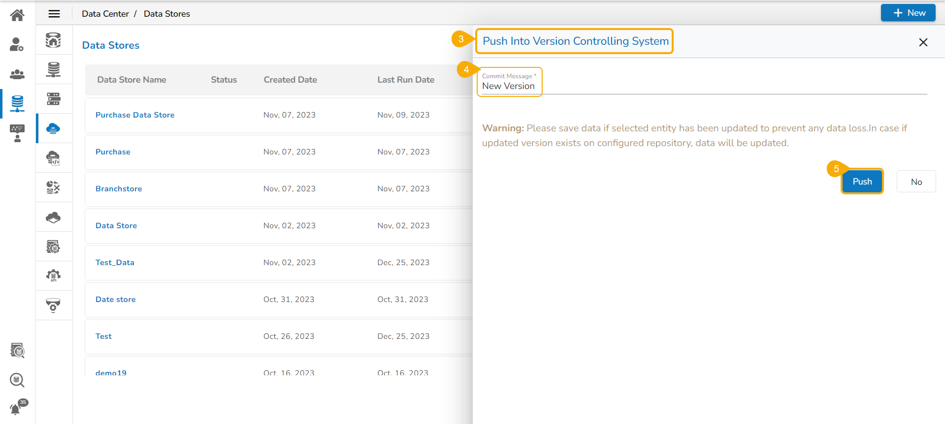 This is the mechanism to versioning the Data Store and this will store the latest versions into the Git. While pulling the Data Store user can see the committed message of each version, so user will get more info about the committed data set.