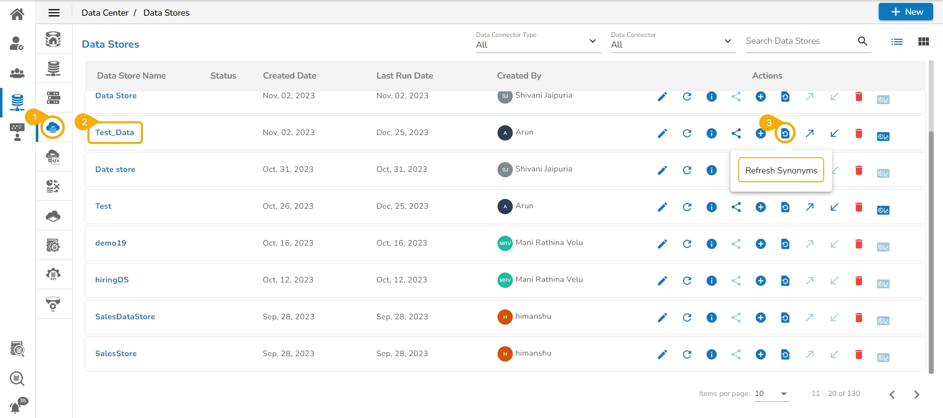 The Refresh Synonyms option helps to refresh data store tables to reflect the later changes in the data store synonyms directory.