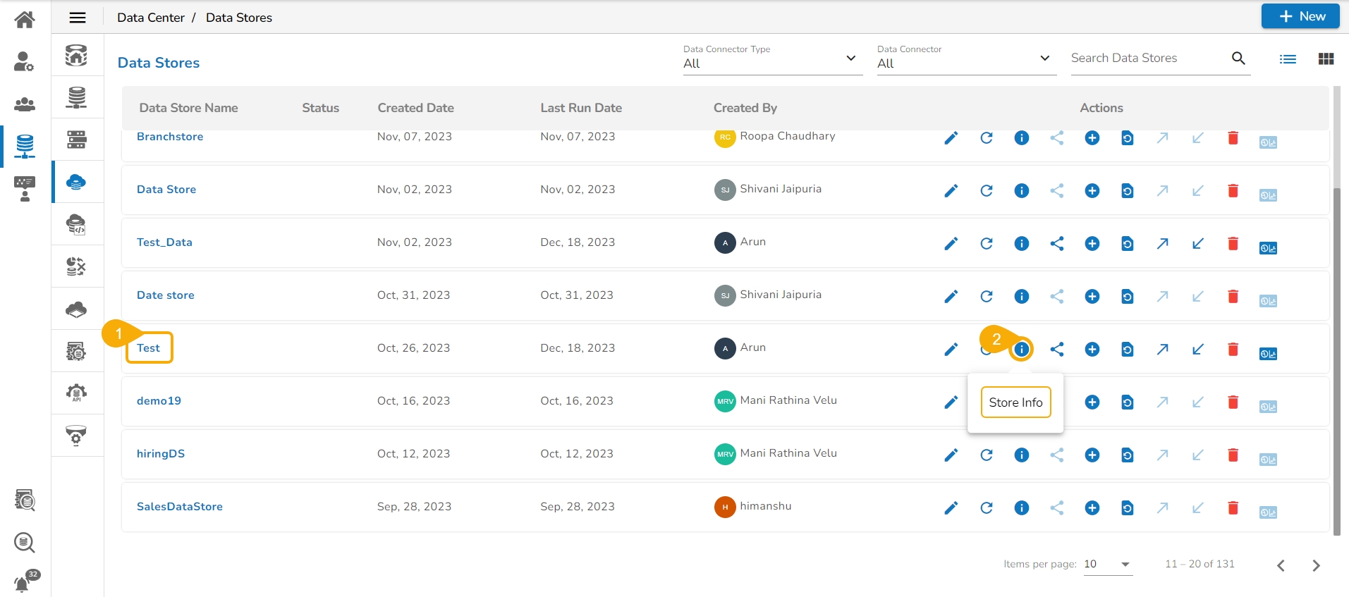 Click the Store Info icon for that Data Store.