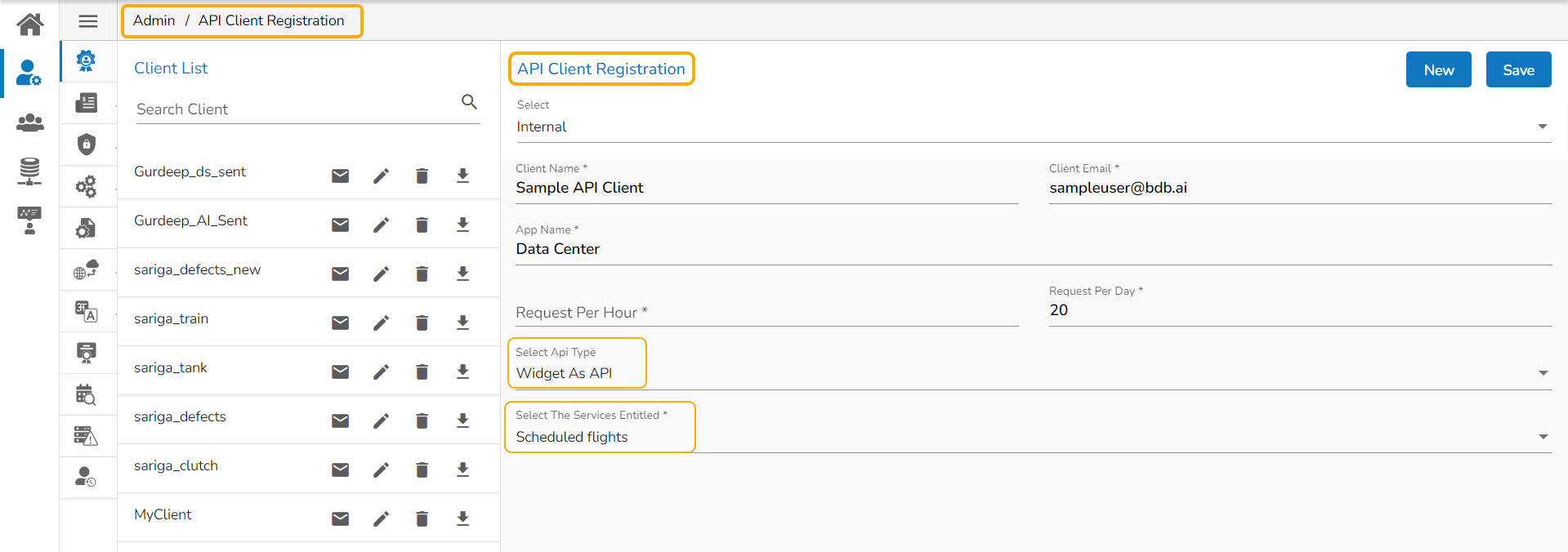 The saved Widgets can be also shared as APIs. To access a newly saved Widget as API, the user needs to create a New API client registration.