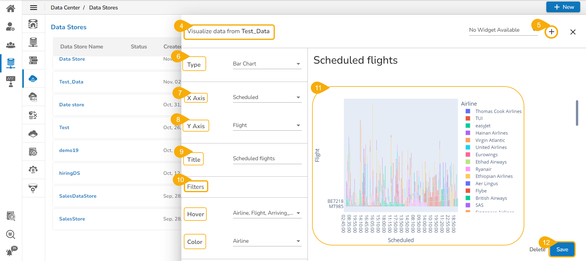 The Widget Visualizer page opens for the selected Data Store.