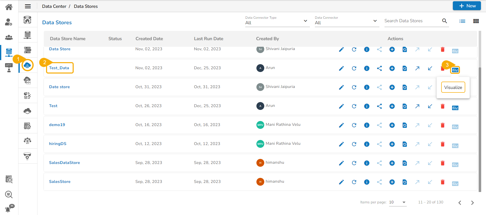 Navigate to the Data Stores list page.