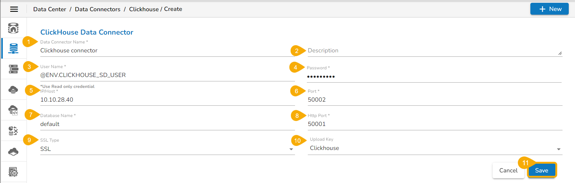 Provide the following information to create a ClickHouse Data Connector: