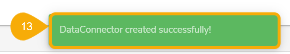 Another success message appears confirming the creation of the Data Connector.