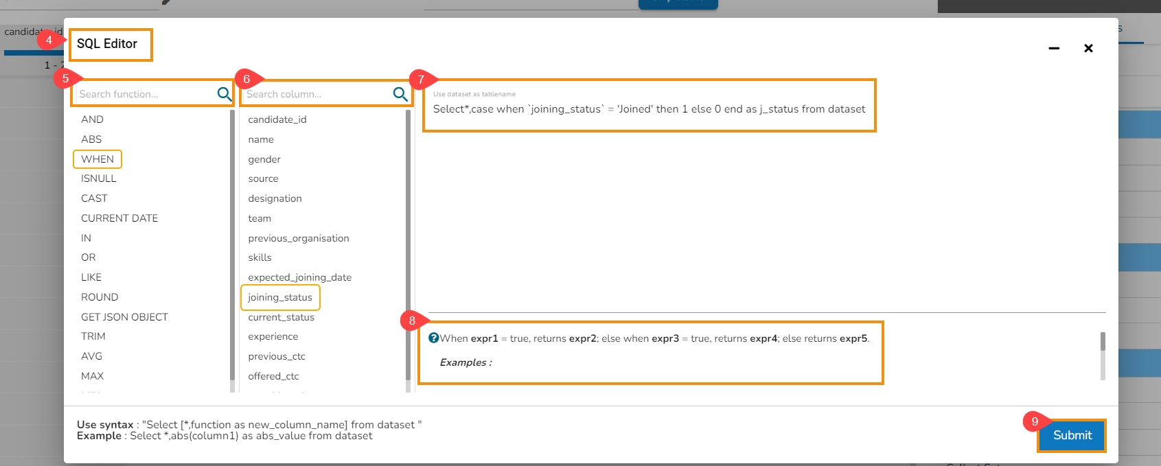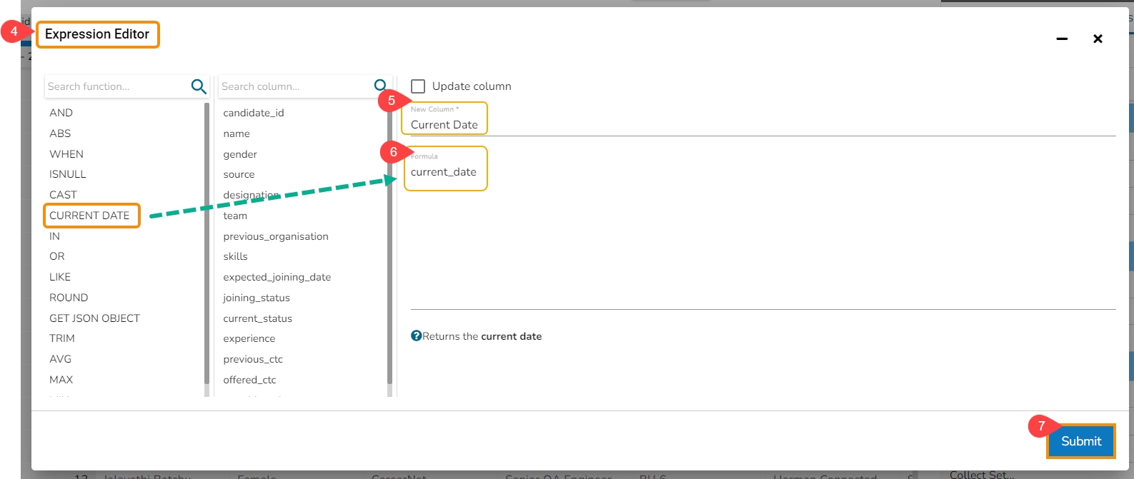 Click the Submit option to either add a new column or update the selected column based on the executed formula/ expression.