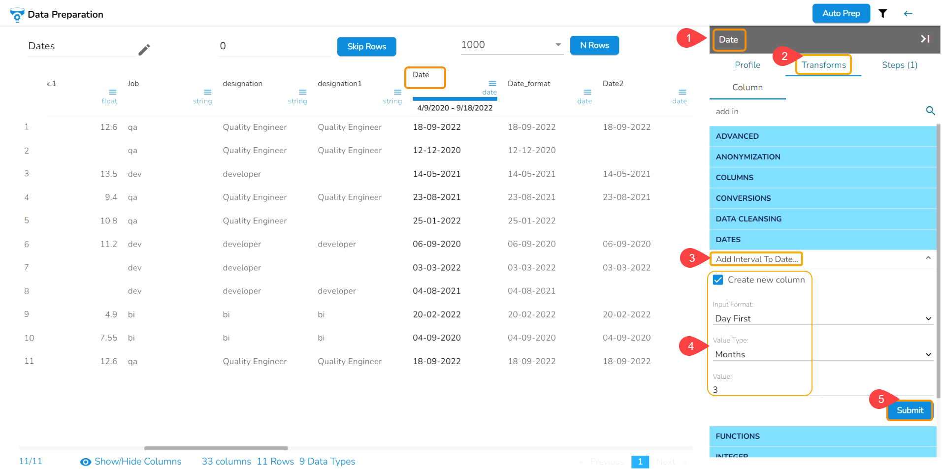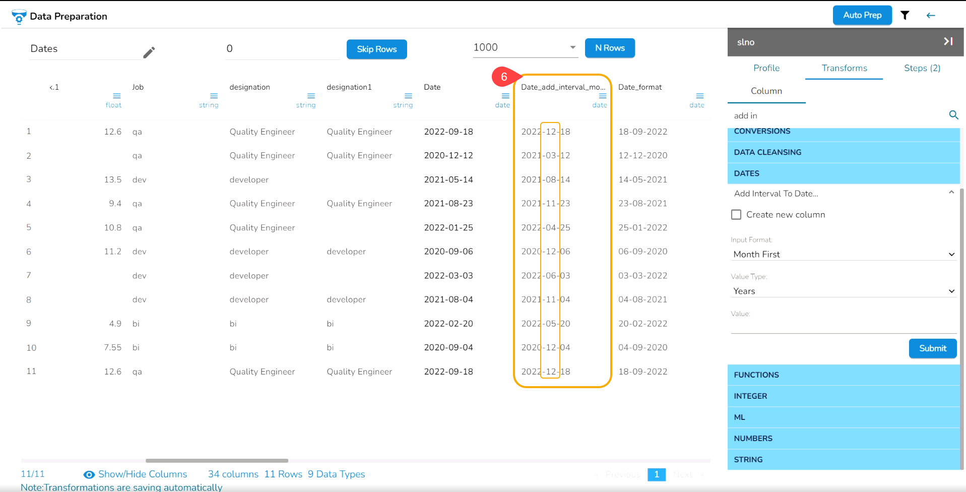 Select the Add Interval to Date transform from the Dates category.