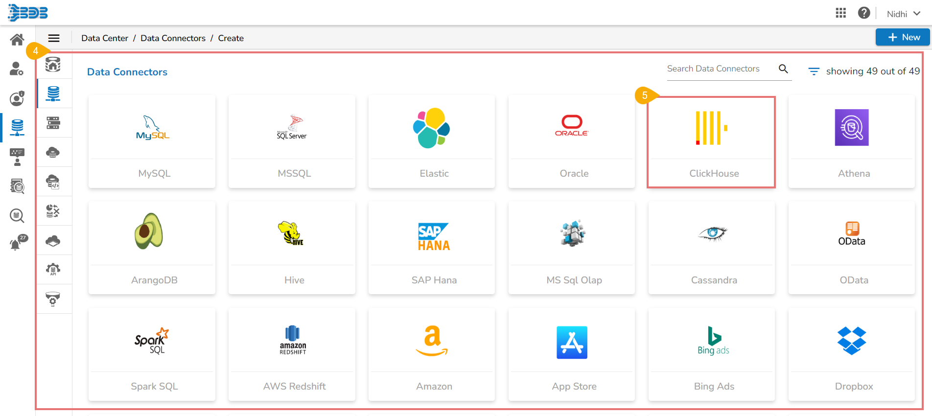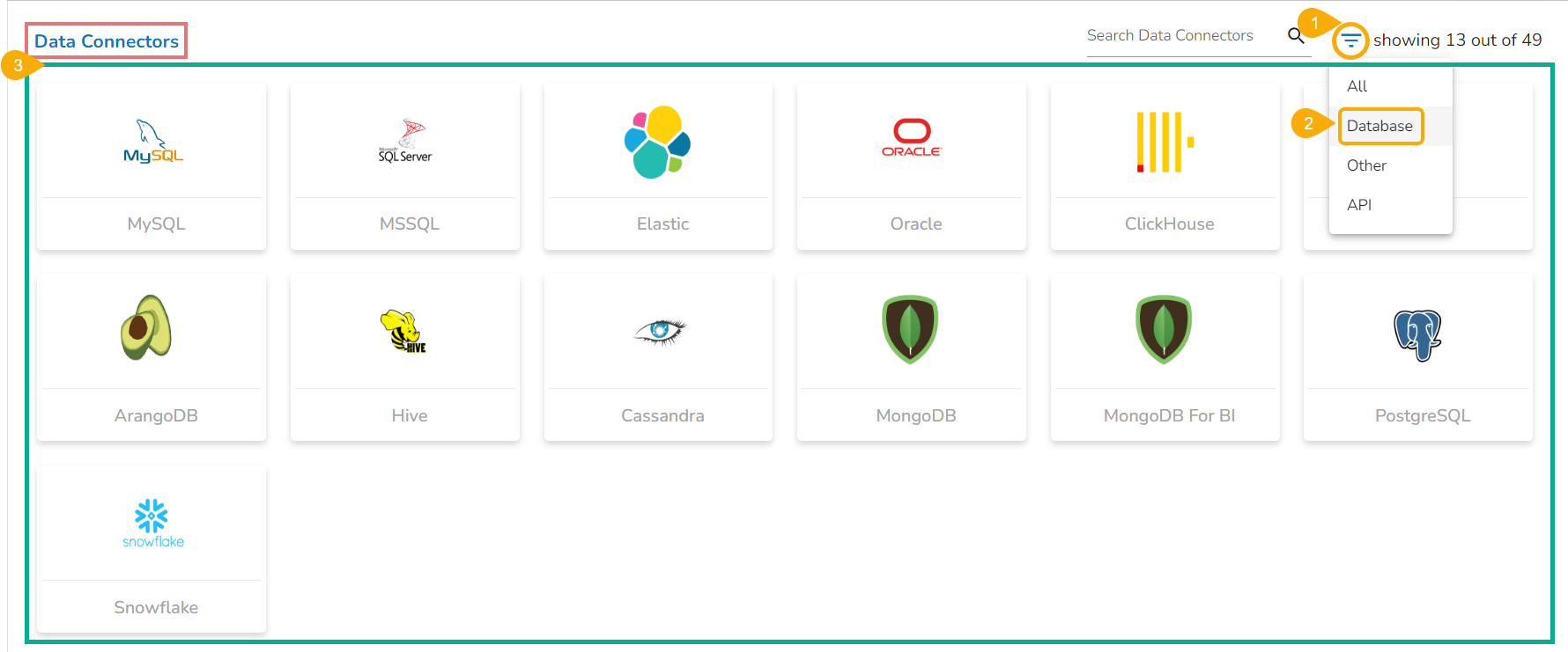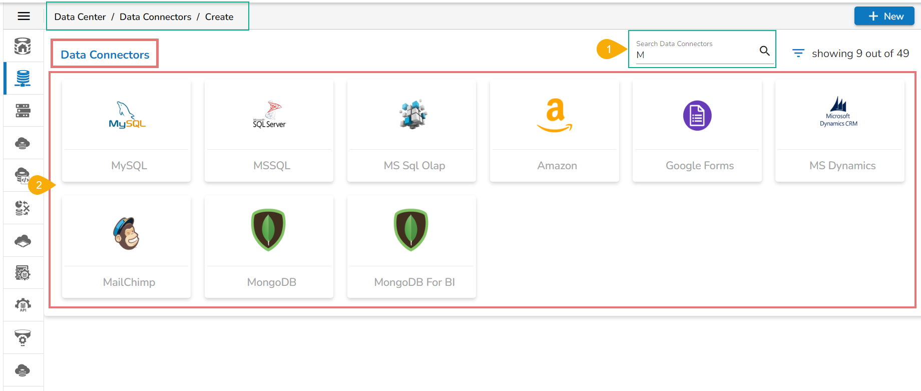 Search across the Data Connector Options