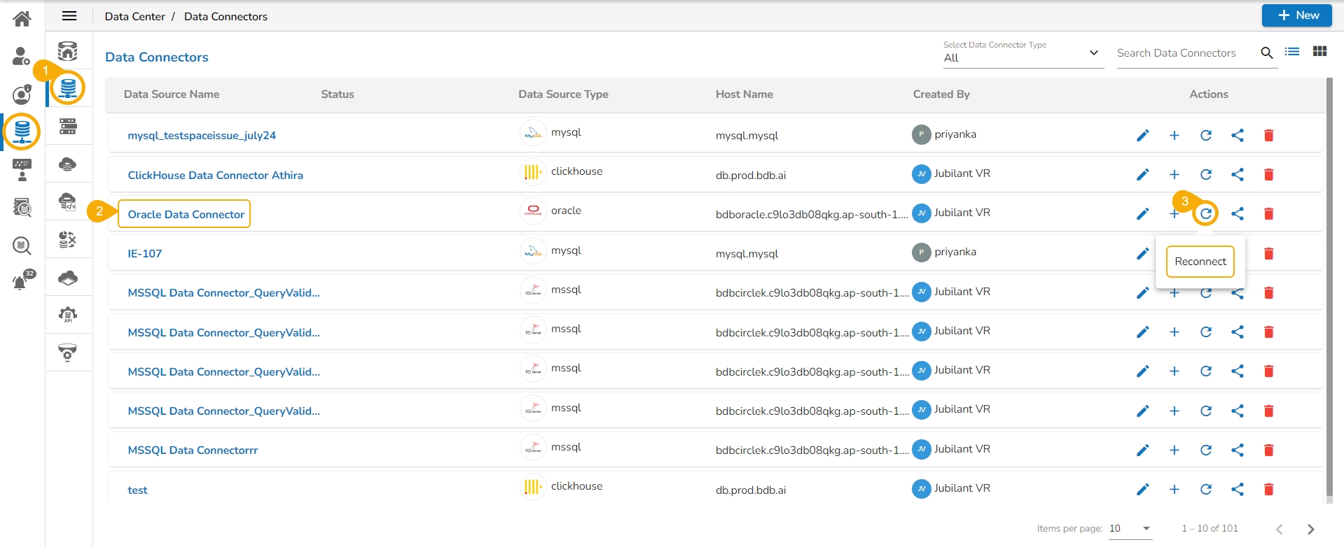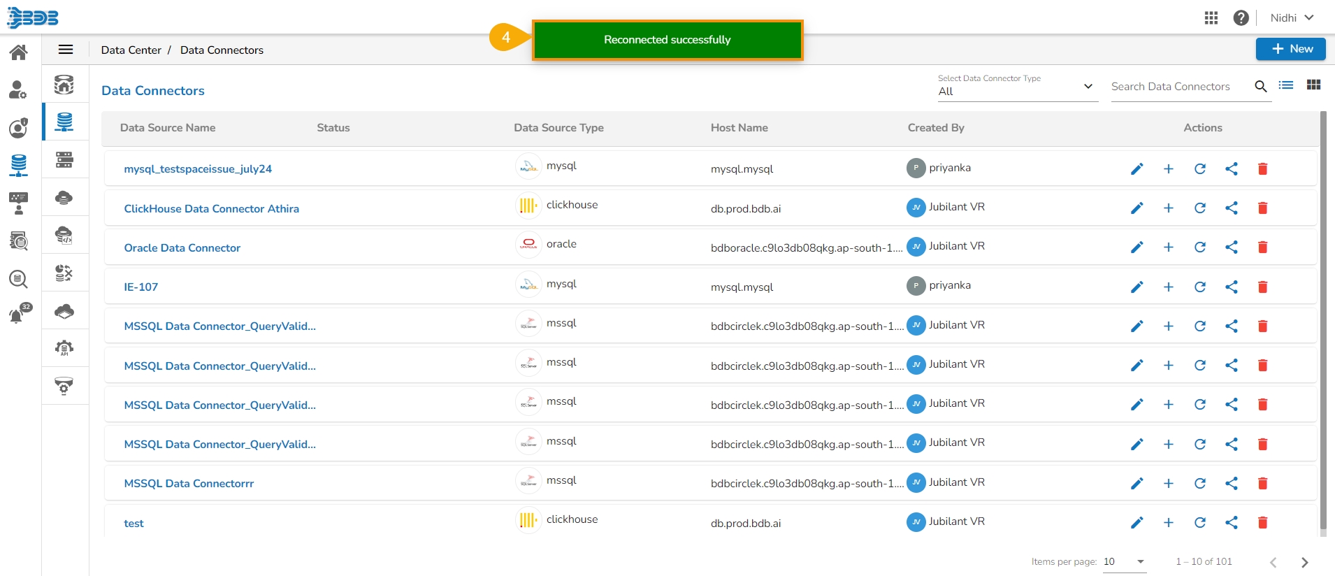 A confirmation message appears, the selected Data Connector gets reconnected.