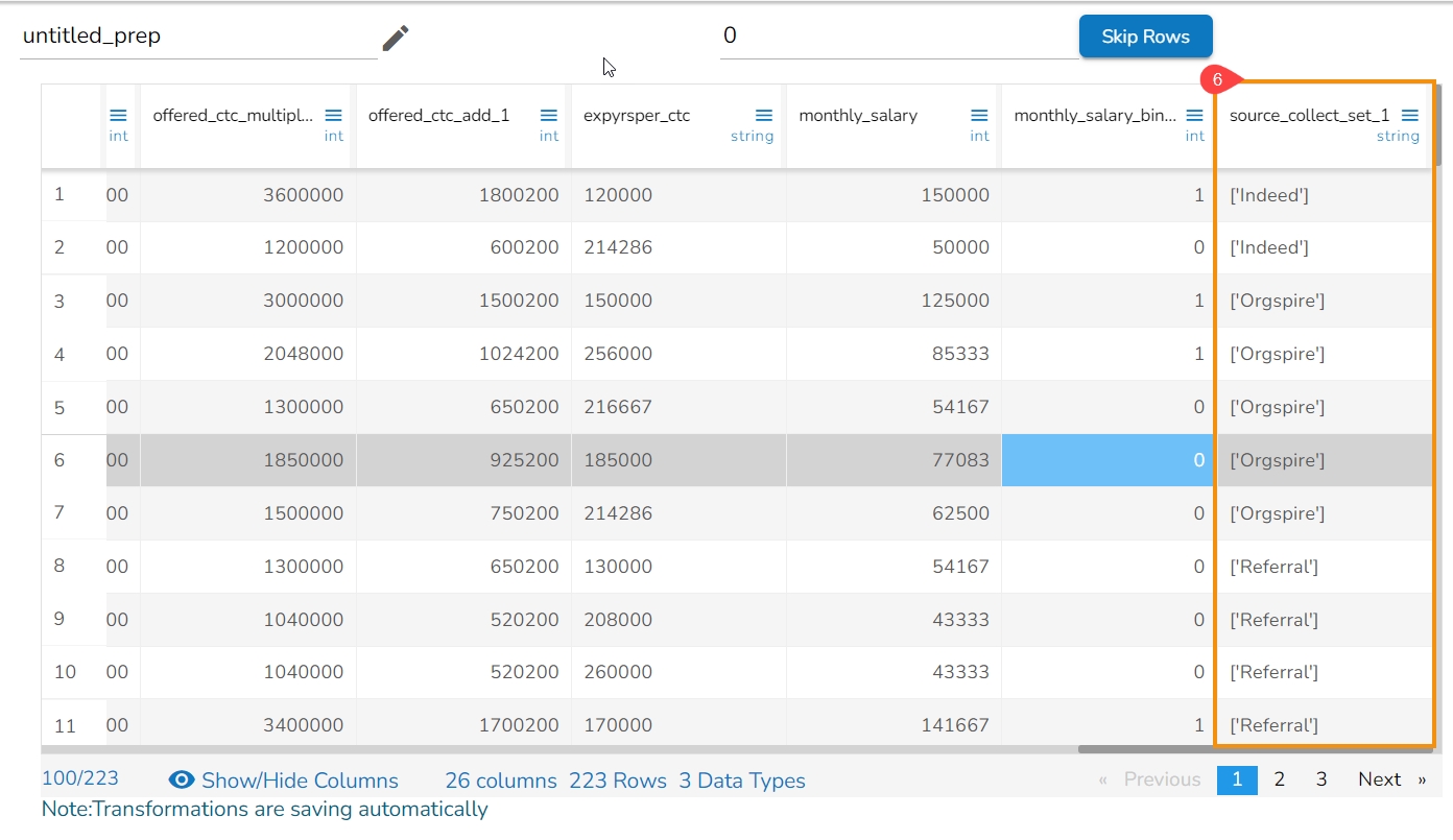 • The user can update values in this column by using the transforms like Fill empty, Search & Replace.