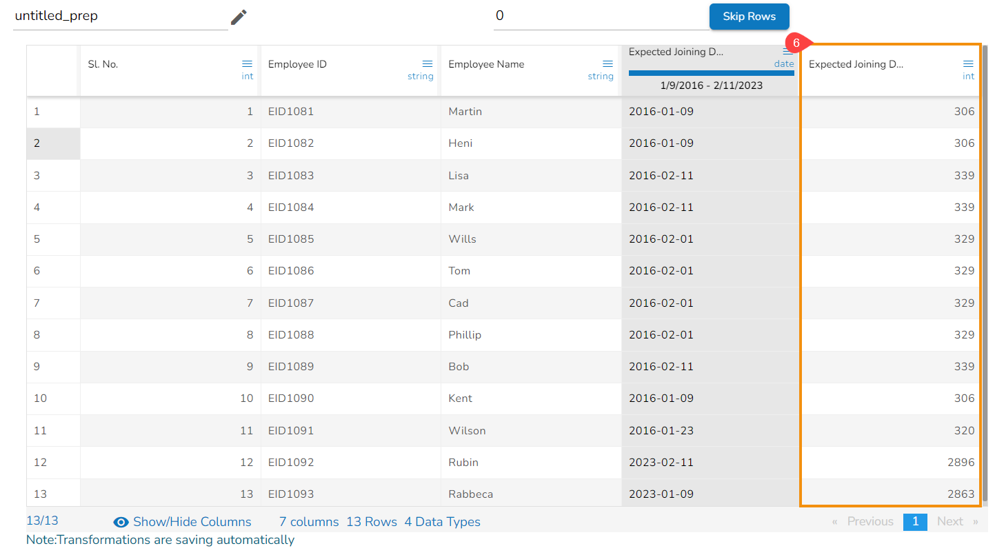 As a result, a new column gets added to the Data Grid reflecting the transformed data as per the set value.