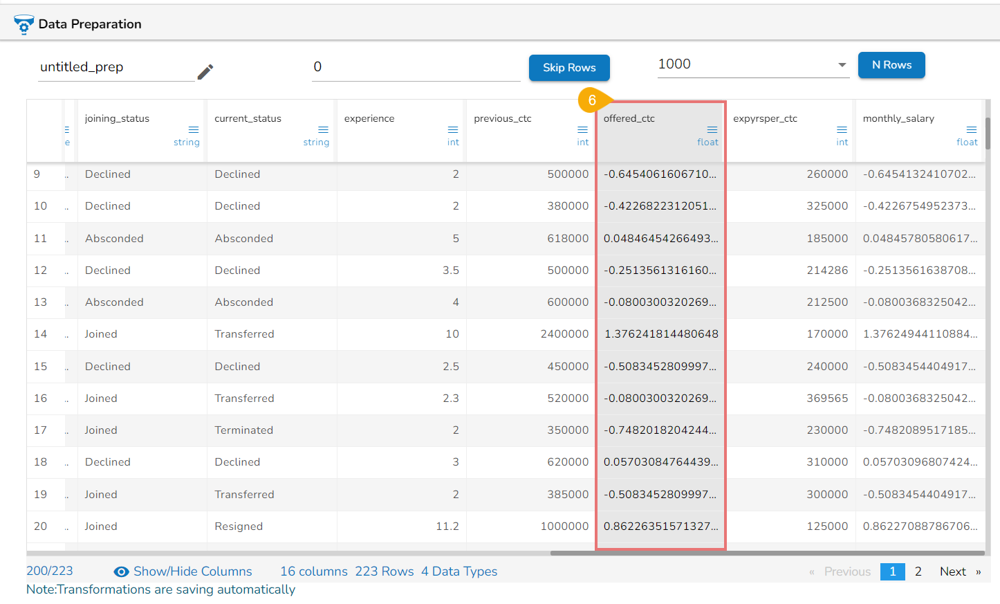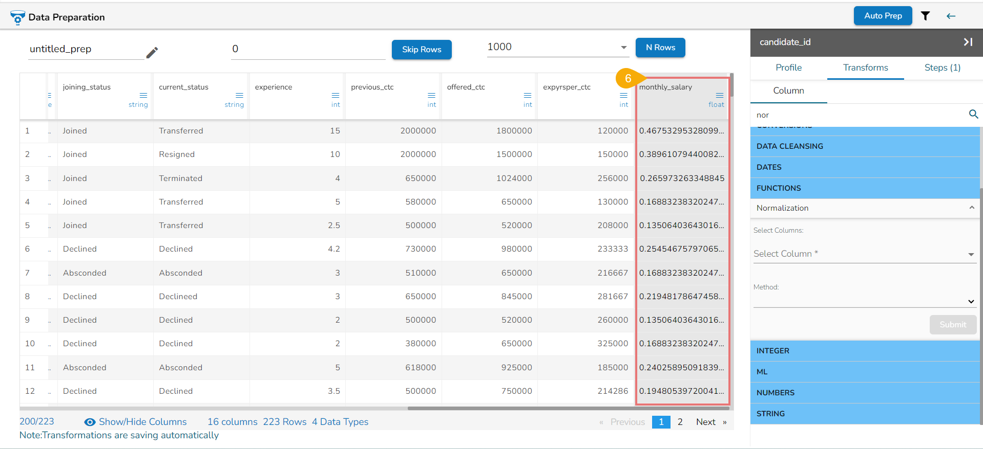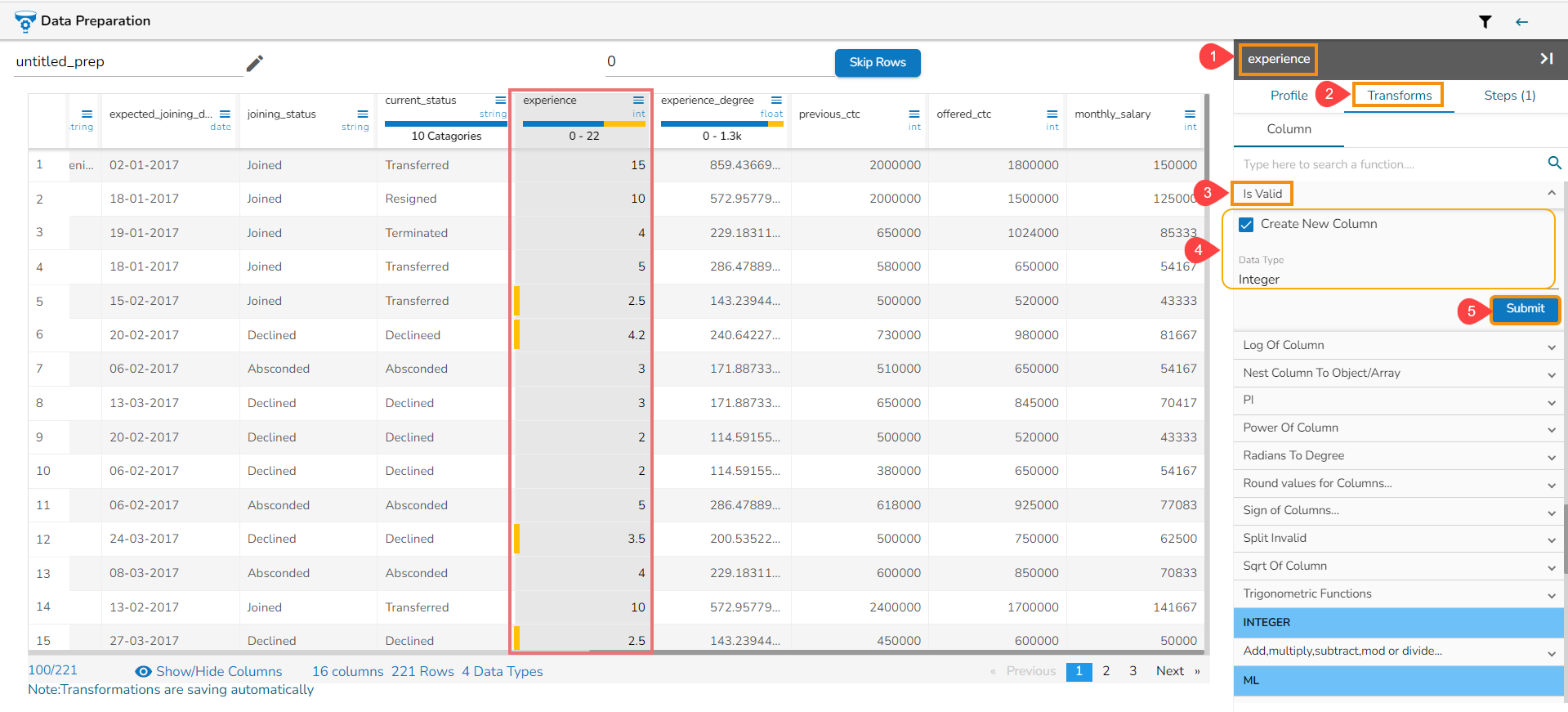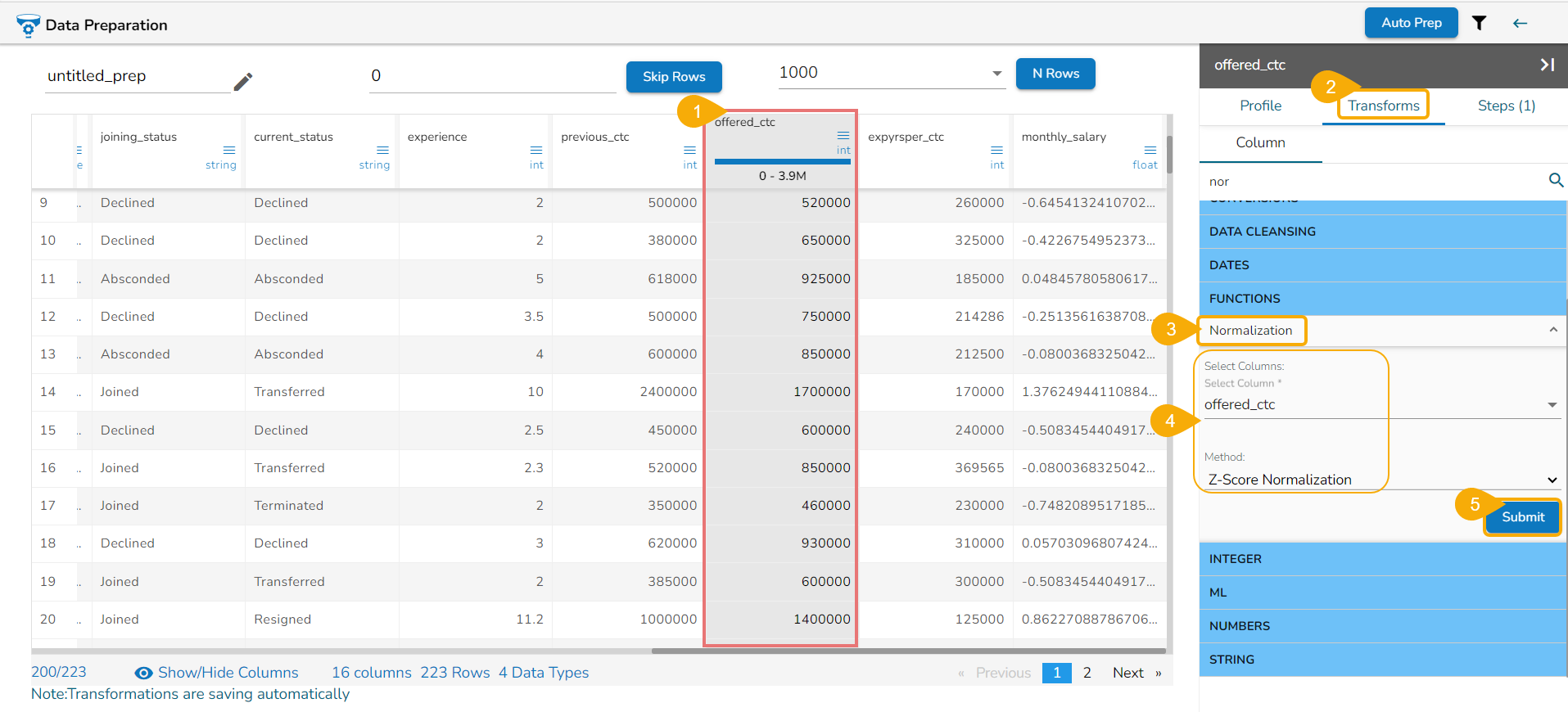 Select one or multiple columns that need to be converted (Use Numerical Columns like int, float, decimal, etc.).