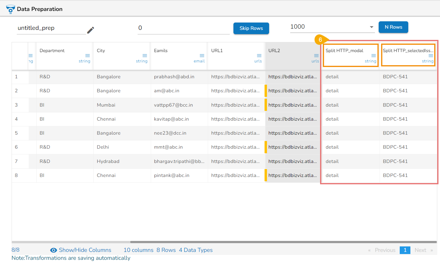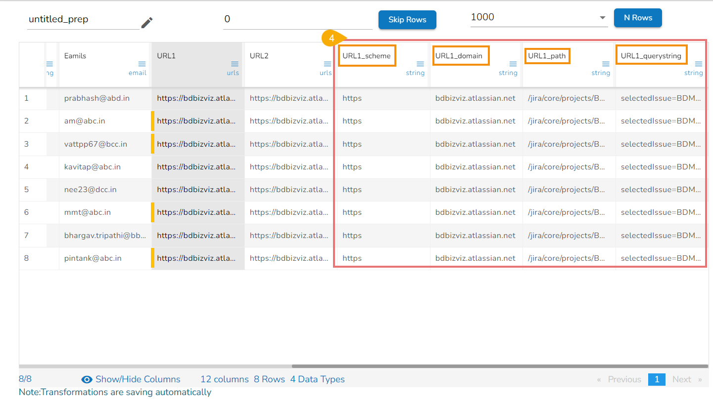 Please Note: The output of the Split URL will be displayed into multiple columns with the prefix of the input column name.