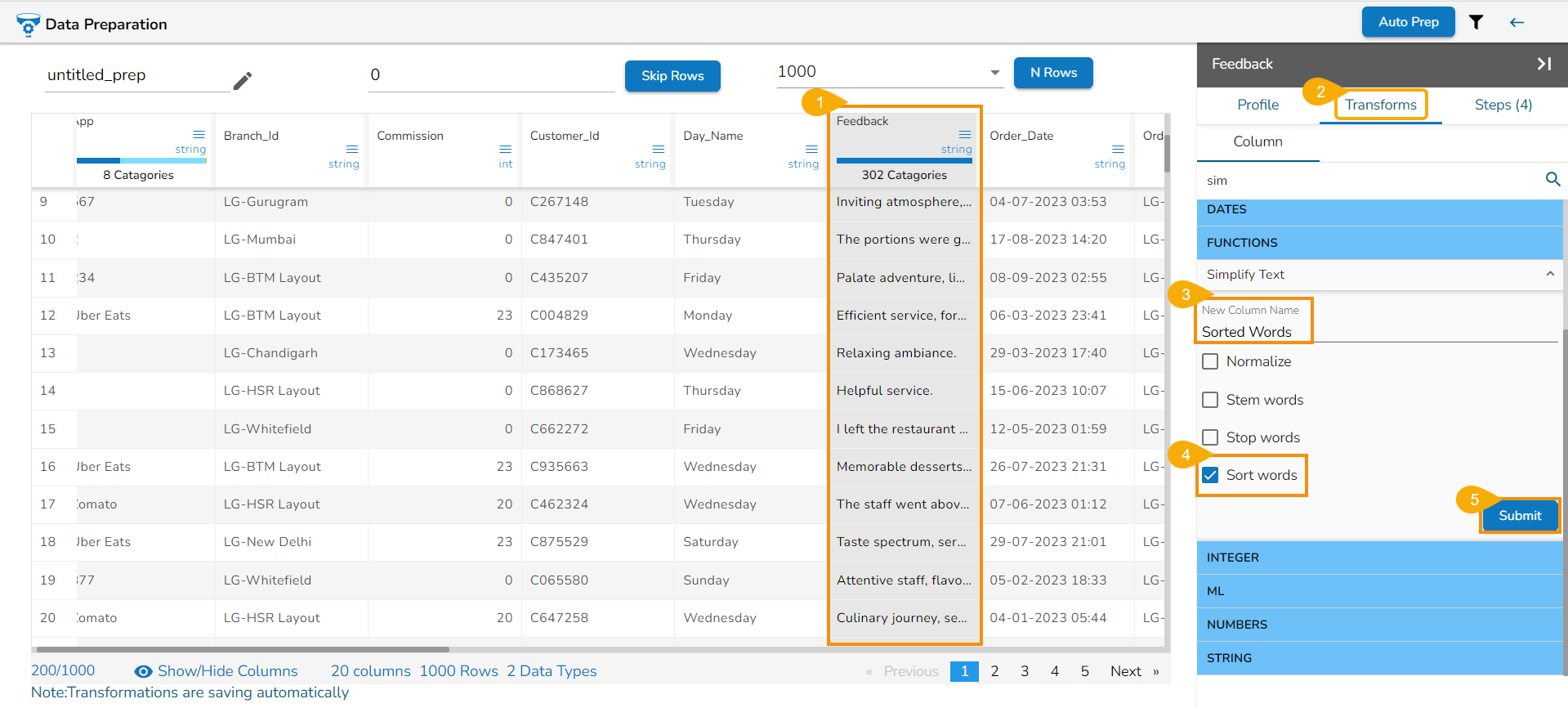 Check out the given walk-through on how to use the Simplify Text transform.