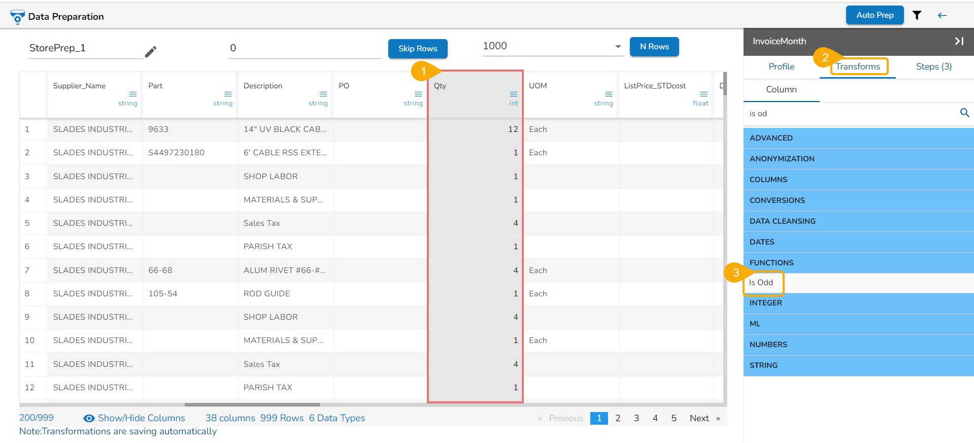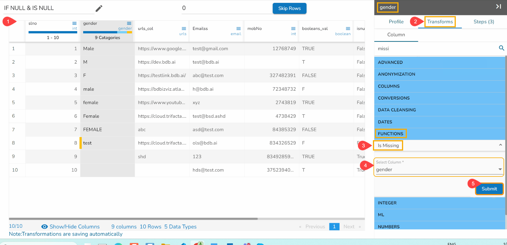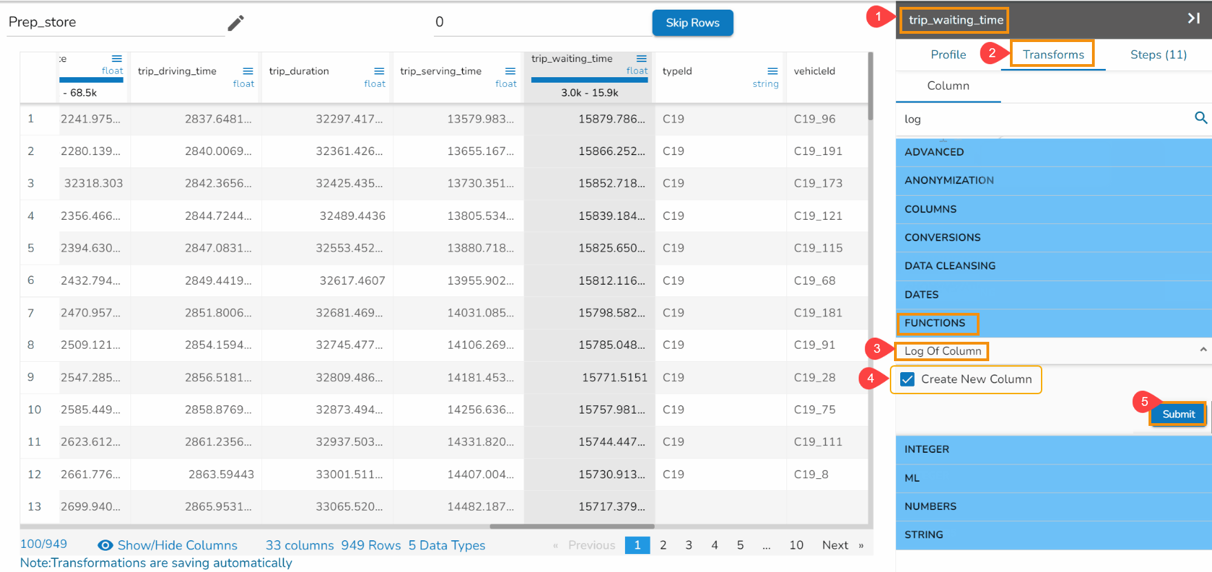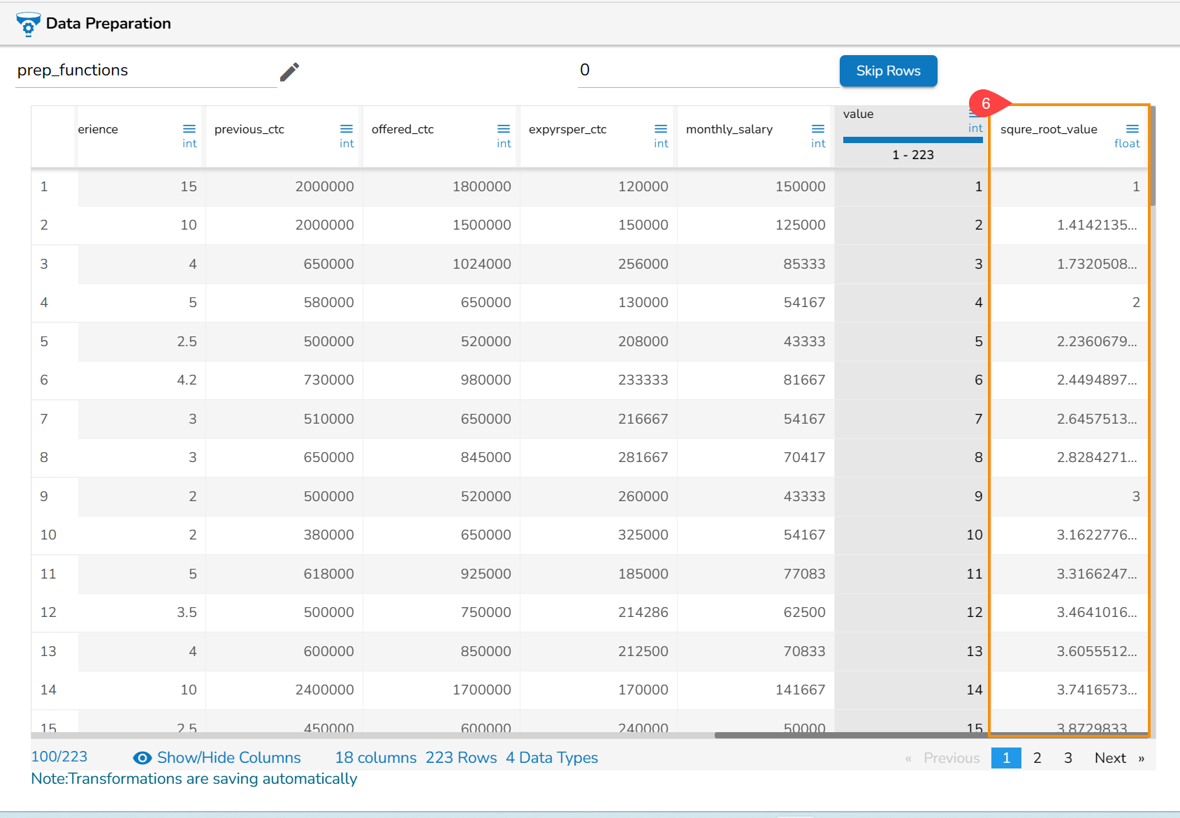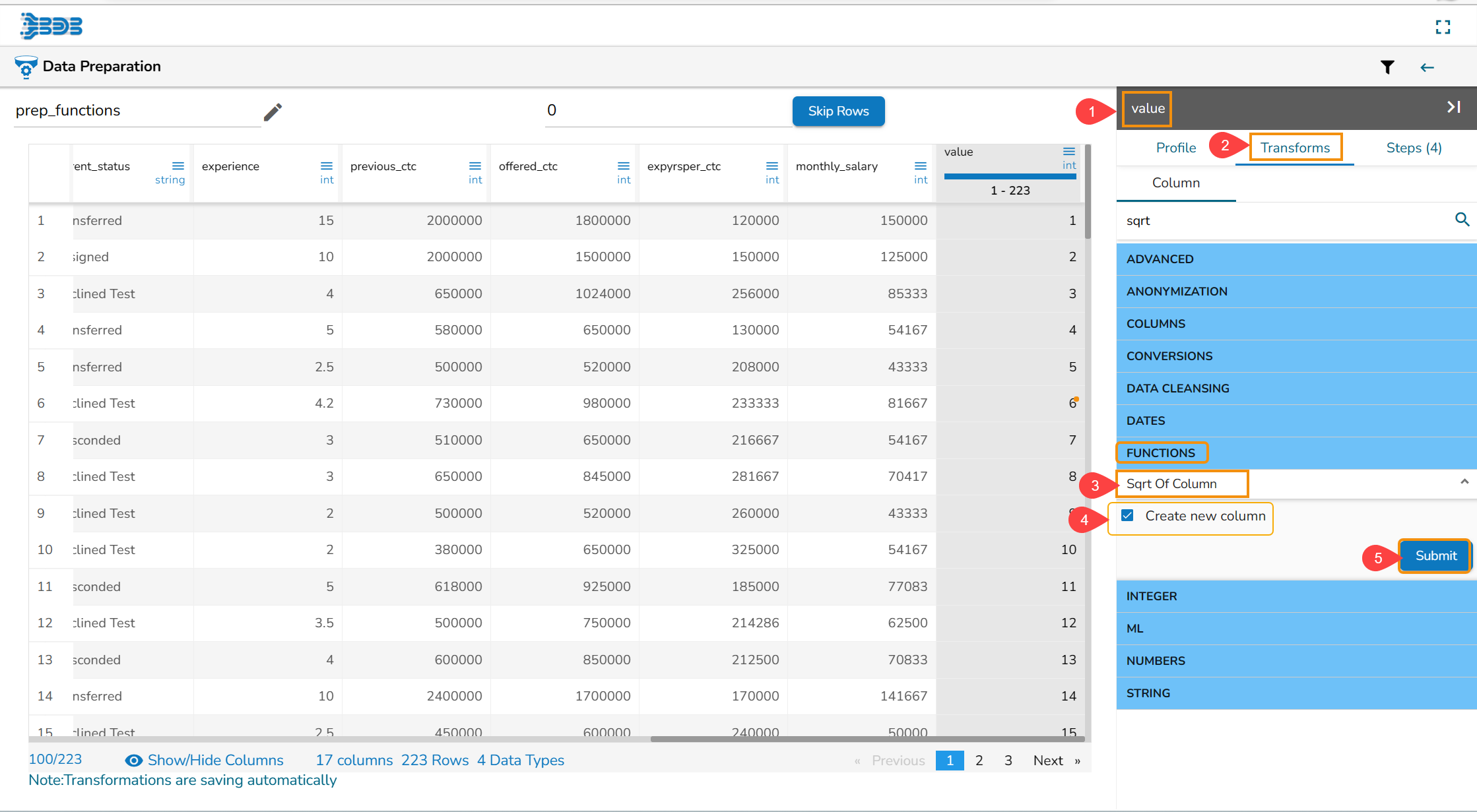 Steps to perform the Sqrt of Column transformation: