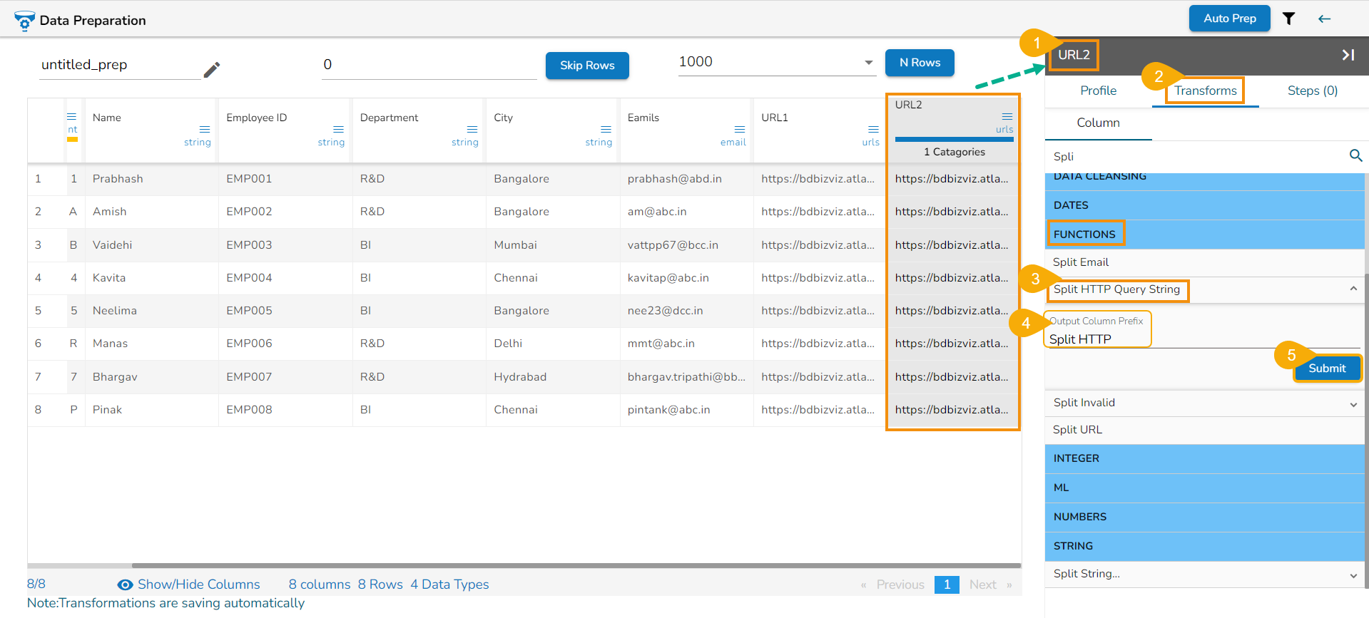 Steps to perform the Split URL transformation: