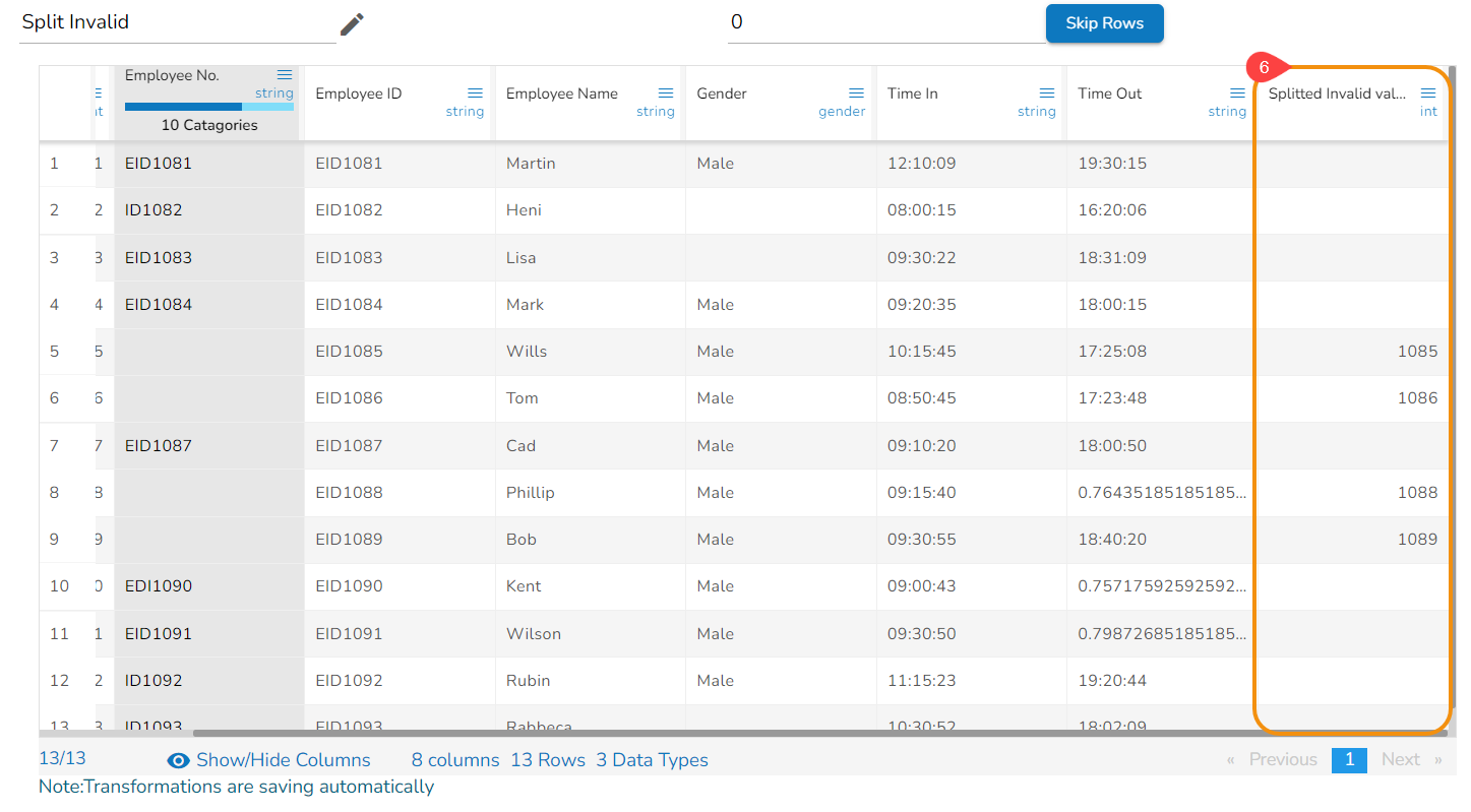 As a result, the invalid values will be extracted in the newly added column from the concerned column.