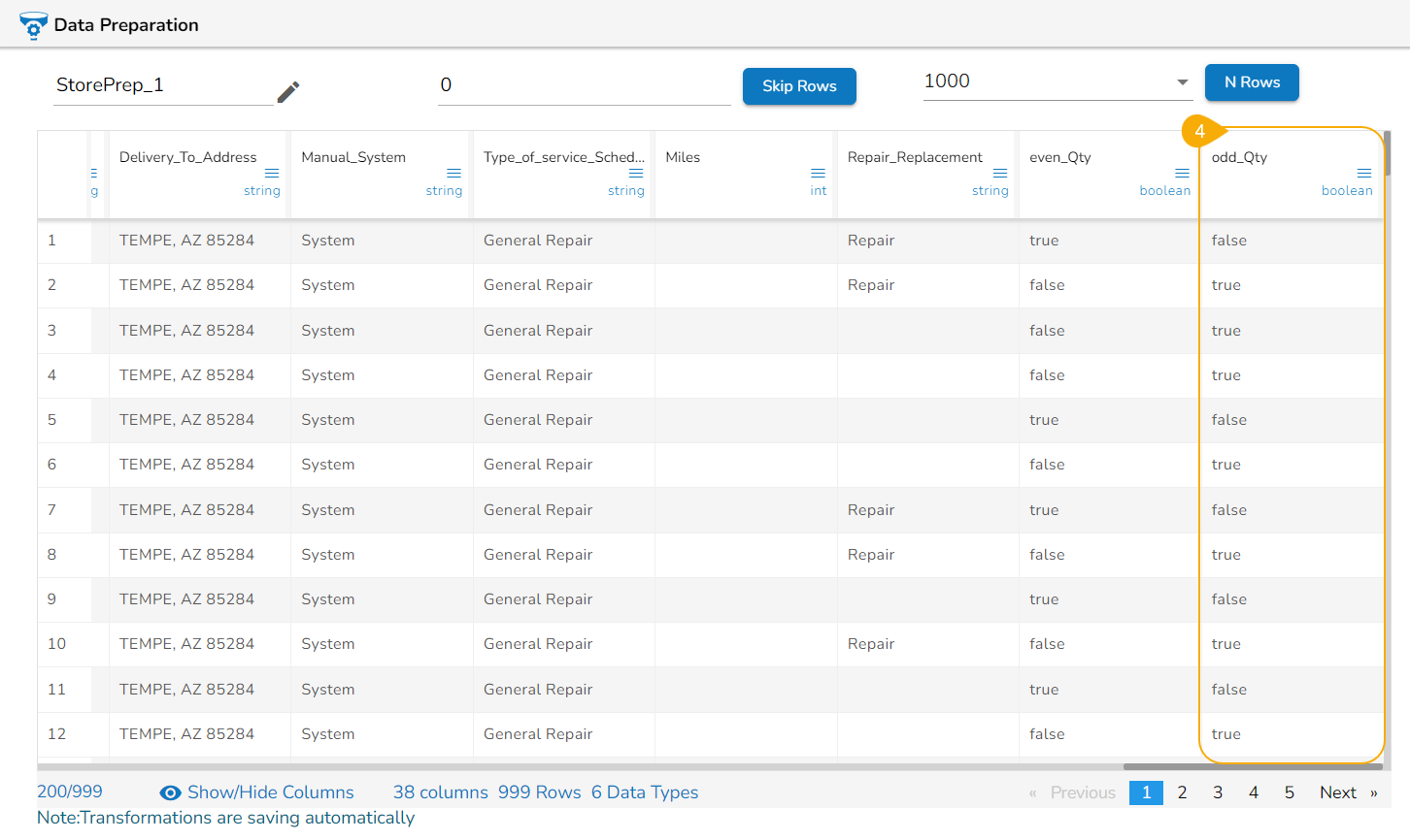 Navigate to a dataset within the Data Preparation format.