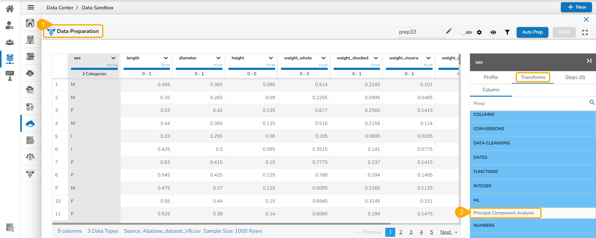 * Navigate to the ***Data Preparation*** workspace.