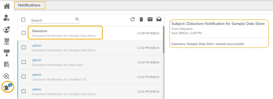 Please Note: The user can check the Notifications options provided on the Platform homepage to confirm data load into the recently created Datastore.
