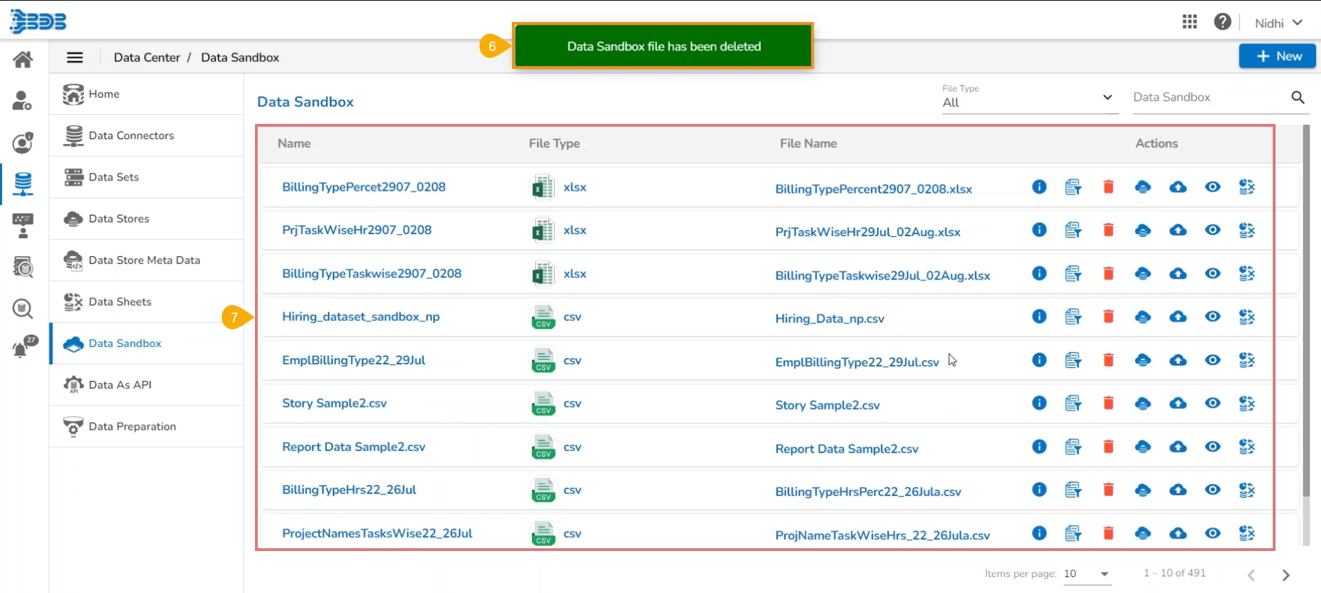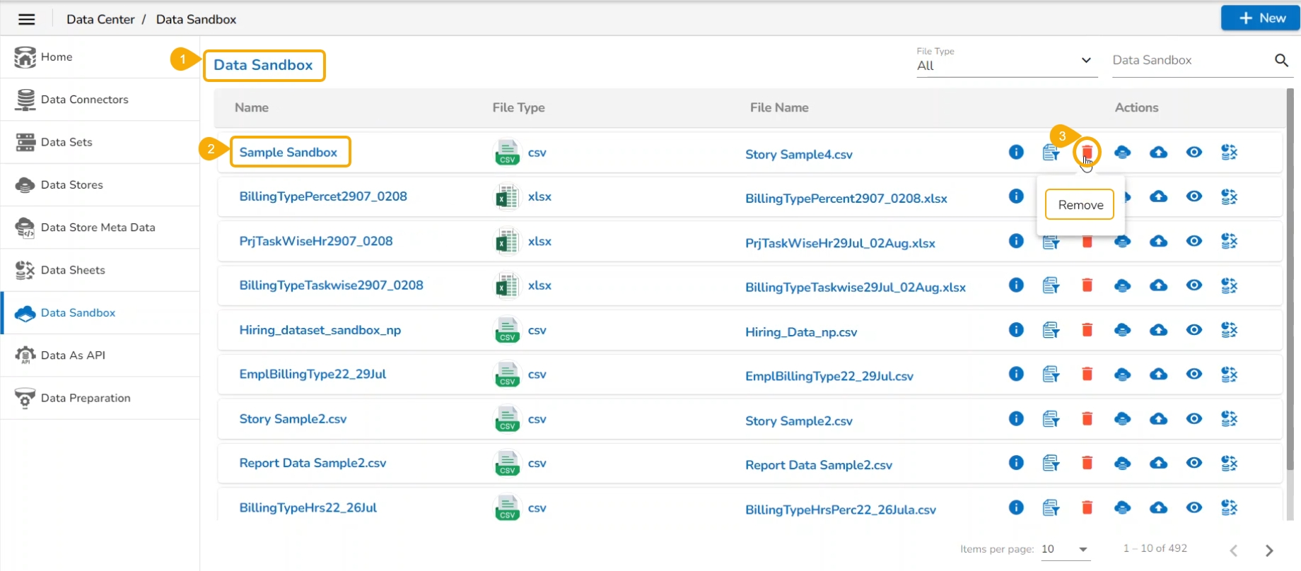 Check out the illustration on Deleting a Data Sandbox file from the Sandbox list page.
