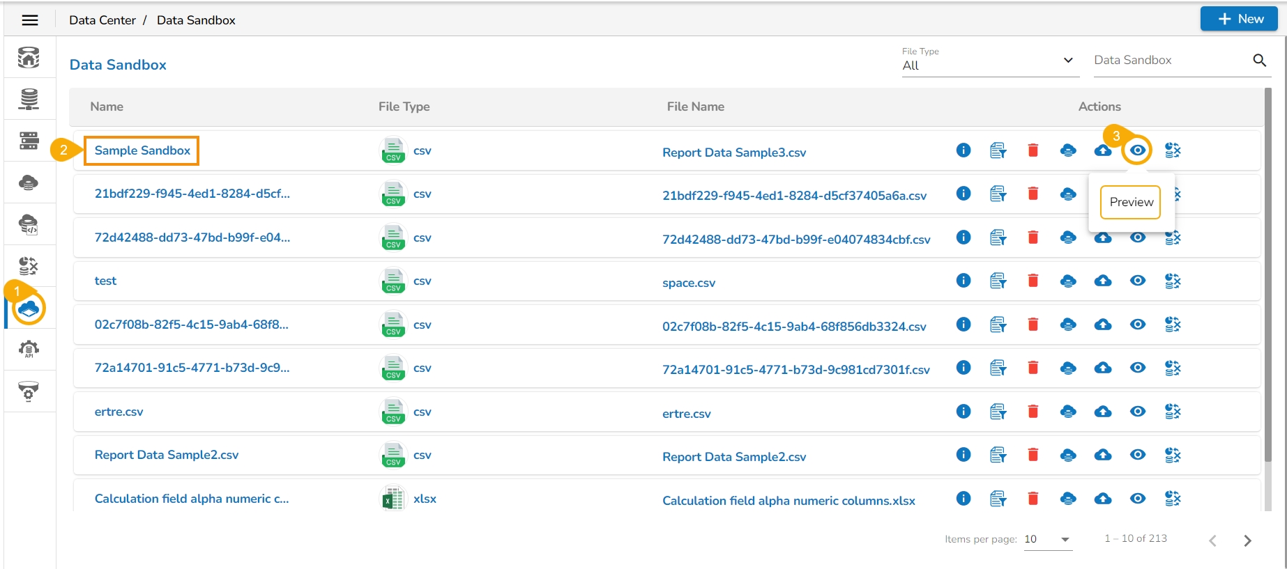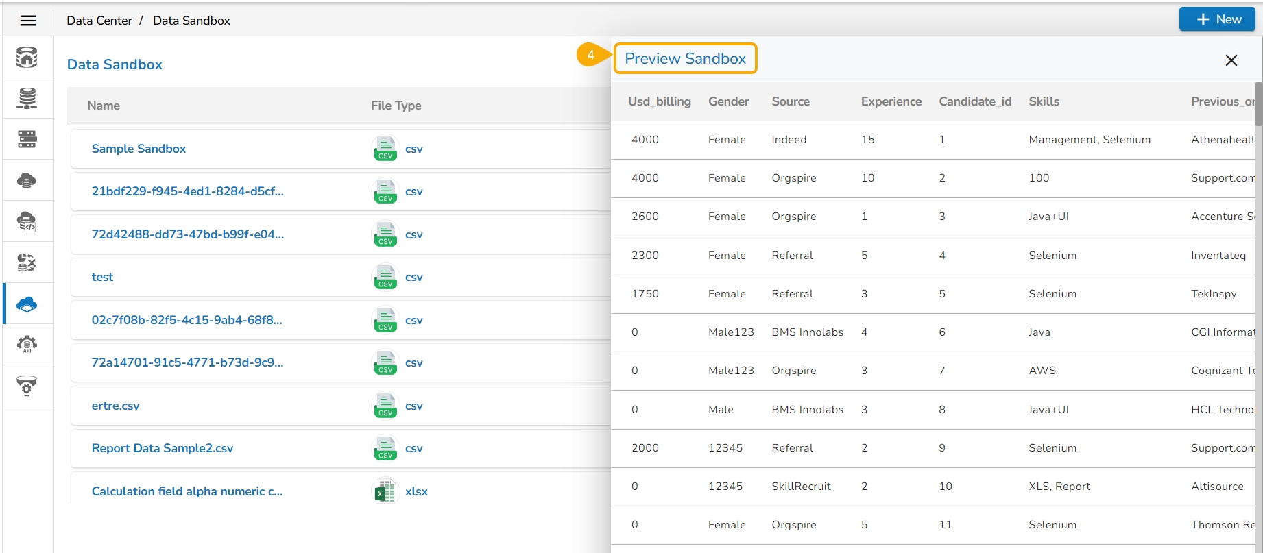 The Preview Sandbox page opens displaying the data preview of the sandbox file.