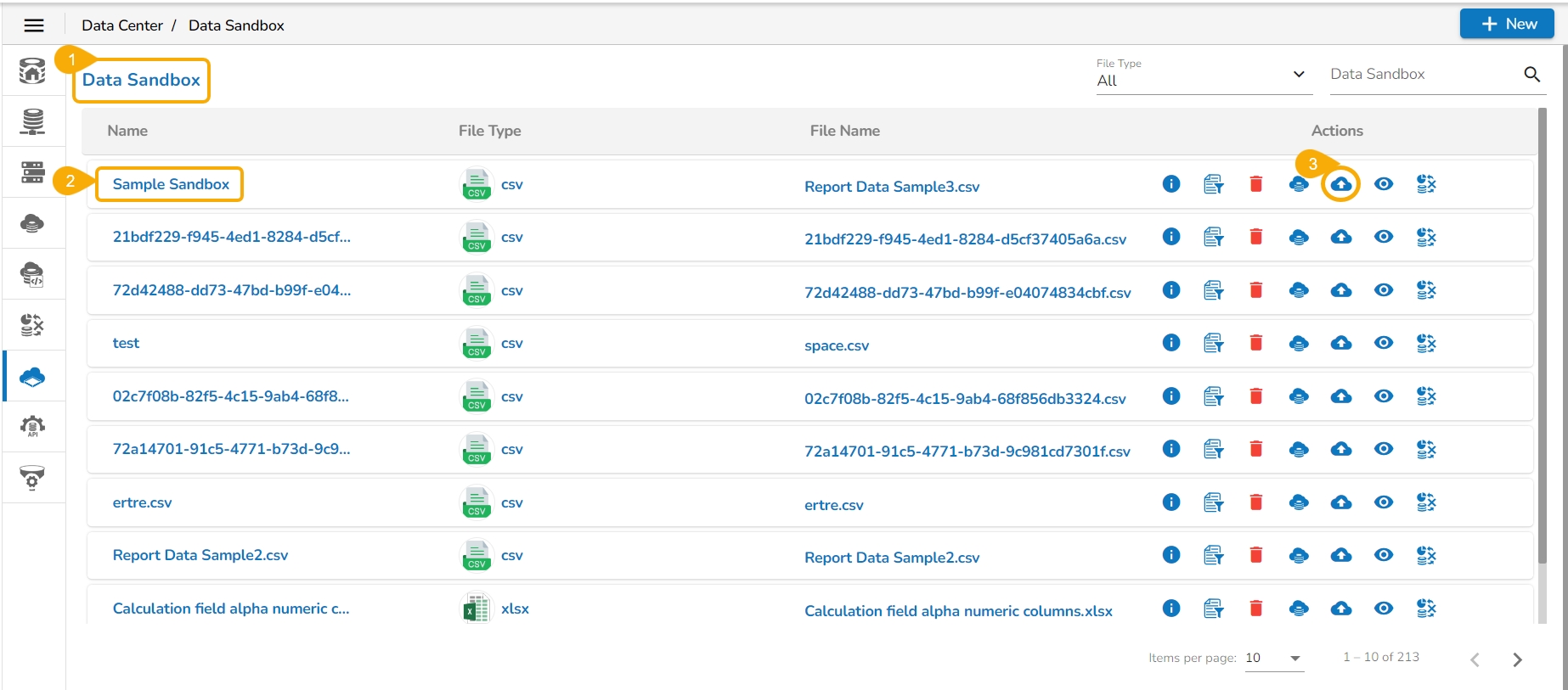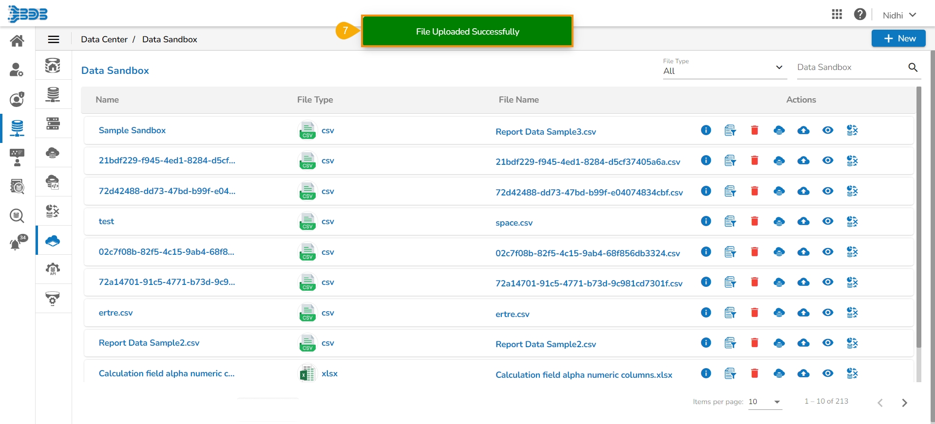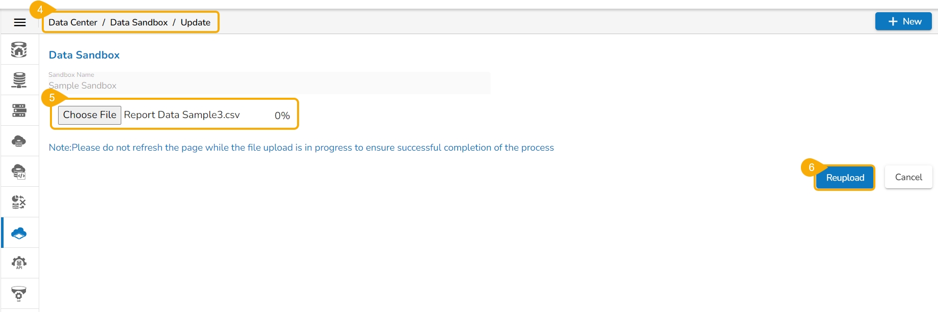 Select a Data Sandbox for which it is required to re-upload the file.