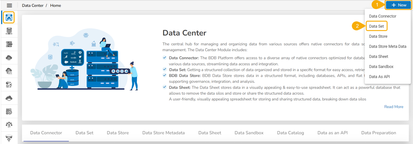 Click the New menu from the Data Center page.