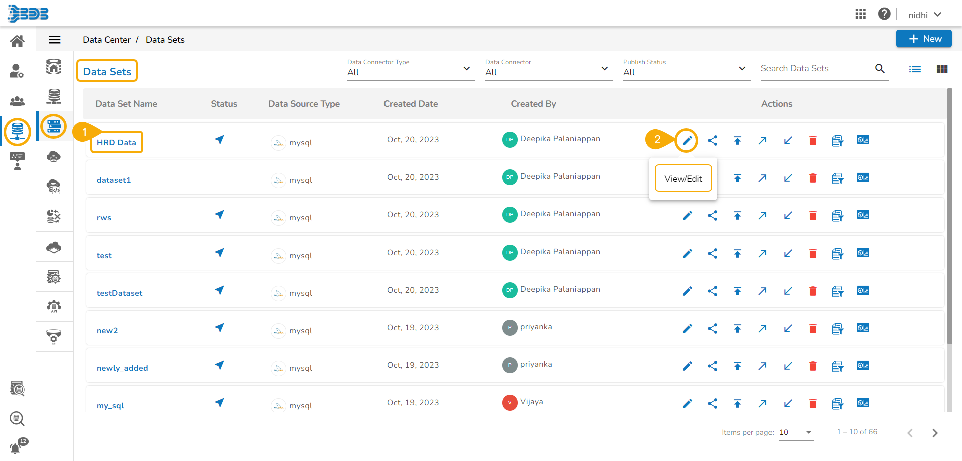 The steps to Edit a Data Set may vary based on the category of the Data Set.