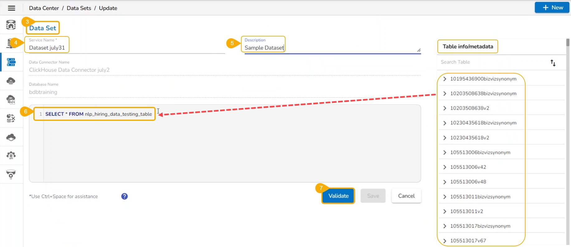 Click the Validate option after modifying the data set.