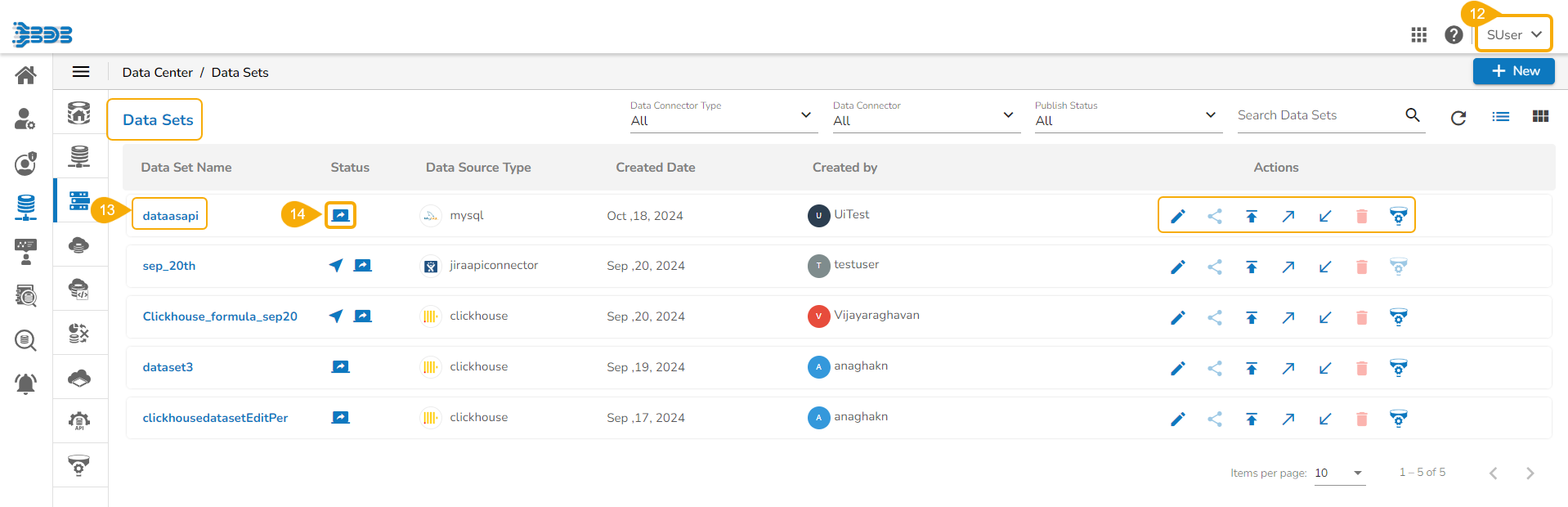 * *The Action permissions for a shared Data Set may vary based on the granted privileges while sharing the Data Set.*&#x20;