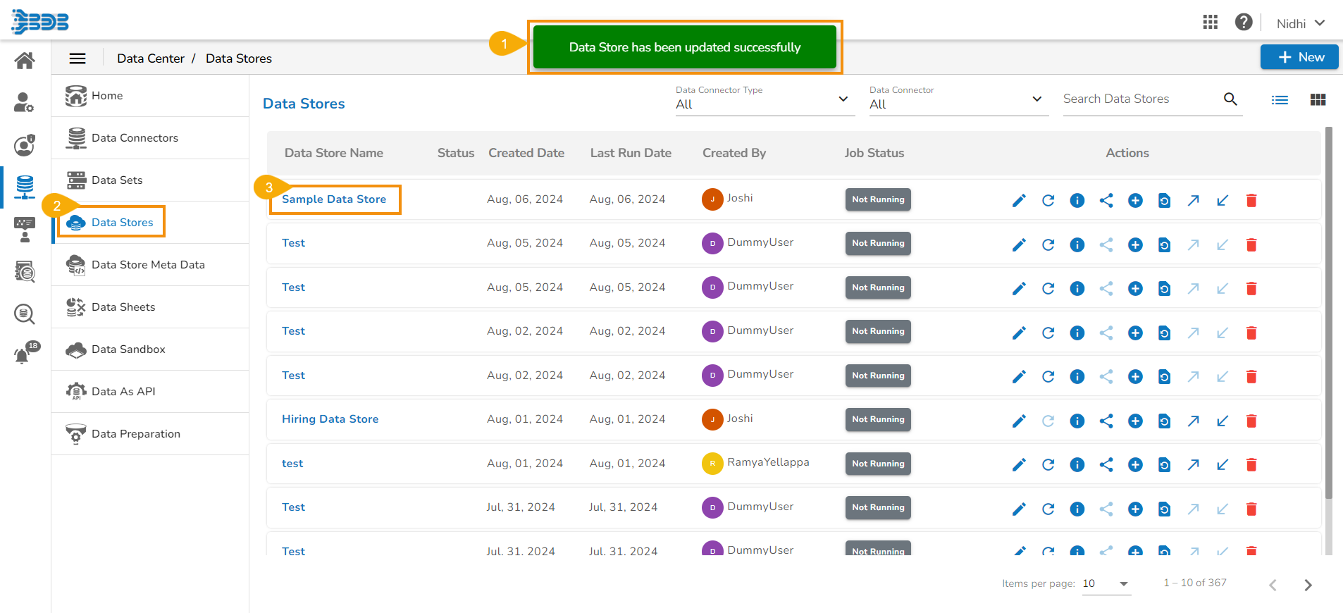 A new Data Store gets created and added to the displayed list.