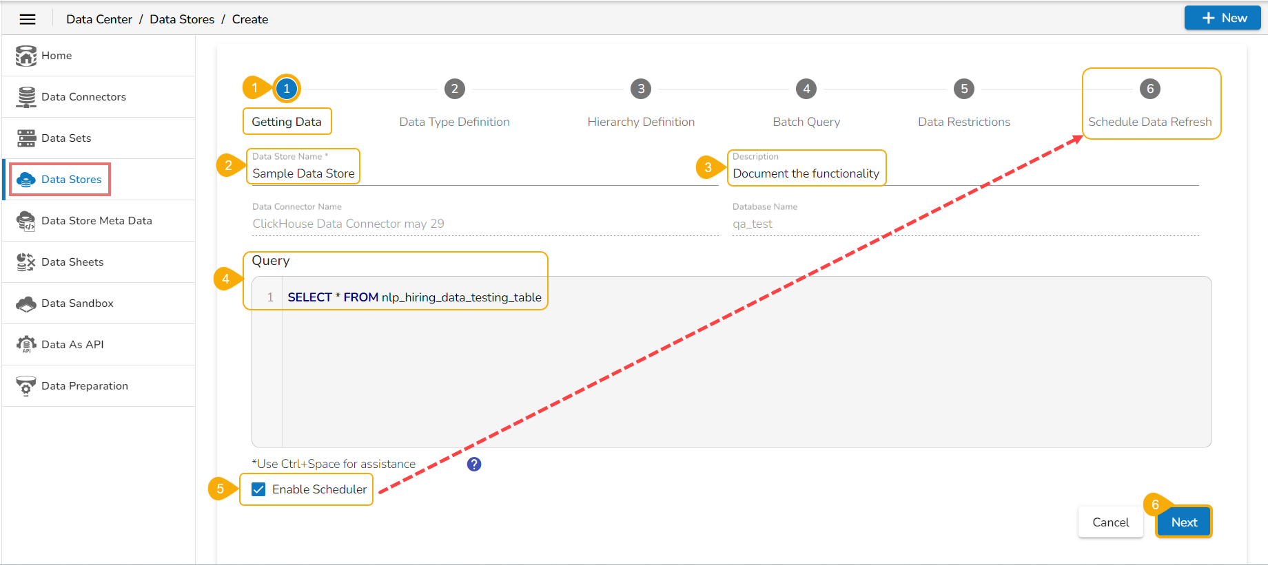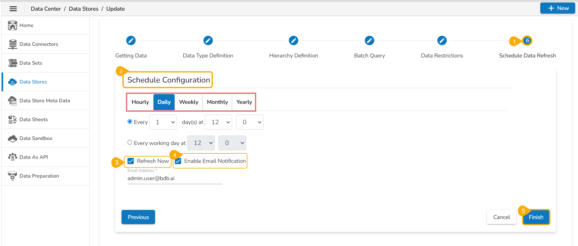 Navigate to the Schedule Data Refresh tab. (This tab only appears for the Data Stores where the scheduler has been enabled using the Getting Data tab).