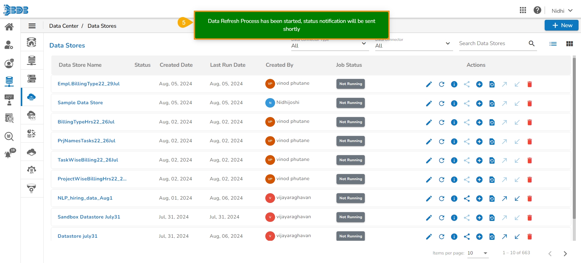 A notification message appears stating that the Refresh process has been started and status notification will be provided to the user through the notification icon.