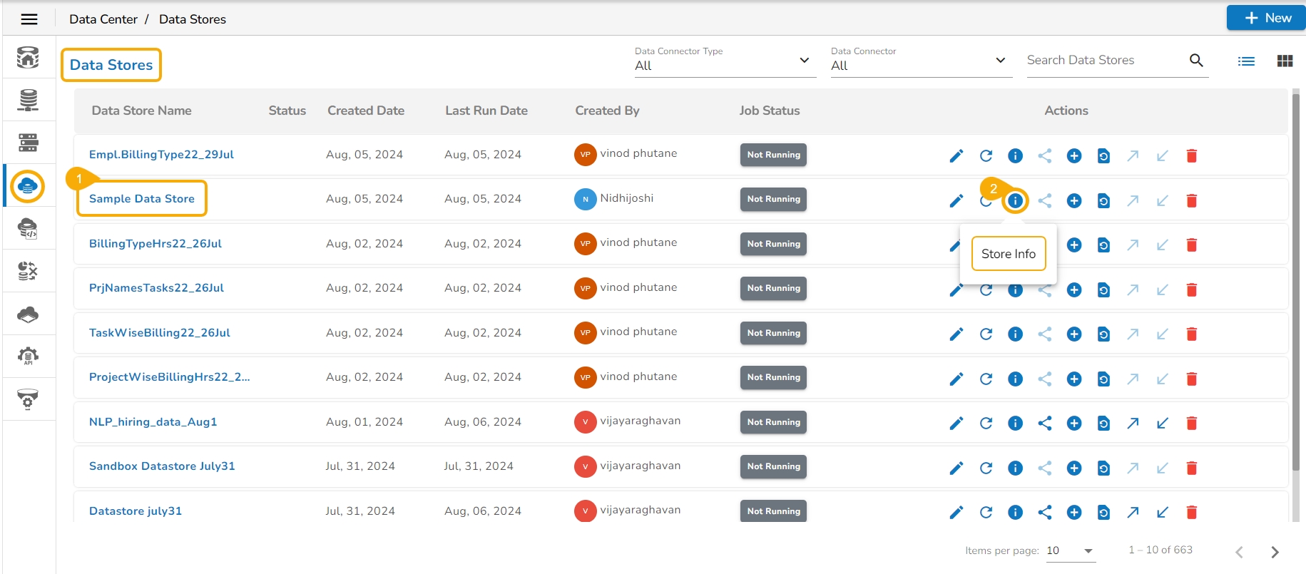 Status: It indicates the status of the job that runs while refreshing the Data Store data.