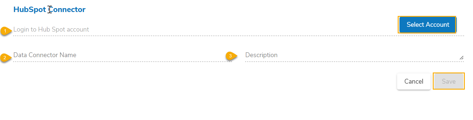 * Click the ***HubSpot*** Data Connector icon from the Data Connector page.