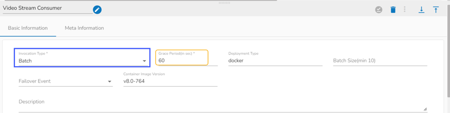 Please Note: If the selected Invocation Type option is Batch, then, Grace Period (in sec)* field appears to provide the grace period for component to go down gracefully after that time.