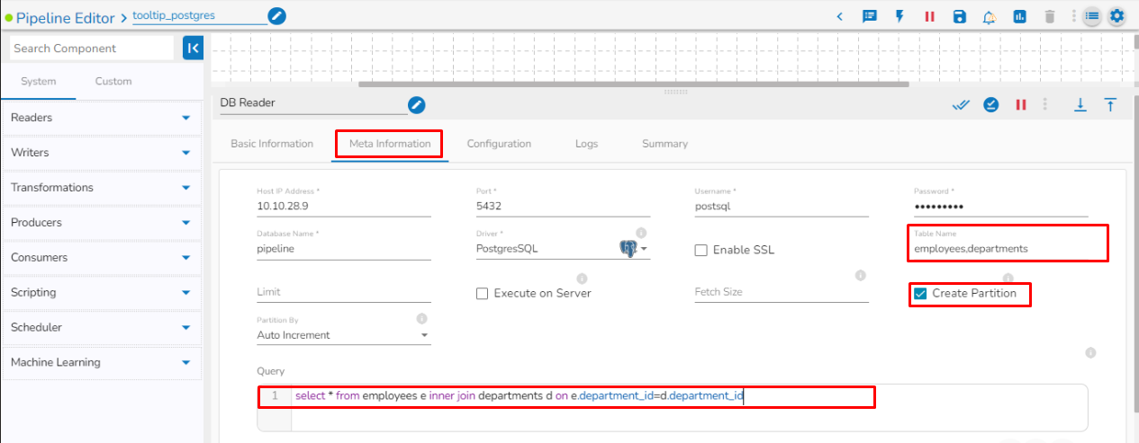 Please follow the steps given in the demonstration to configure the DB Reader component.