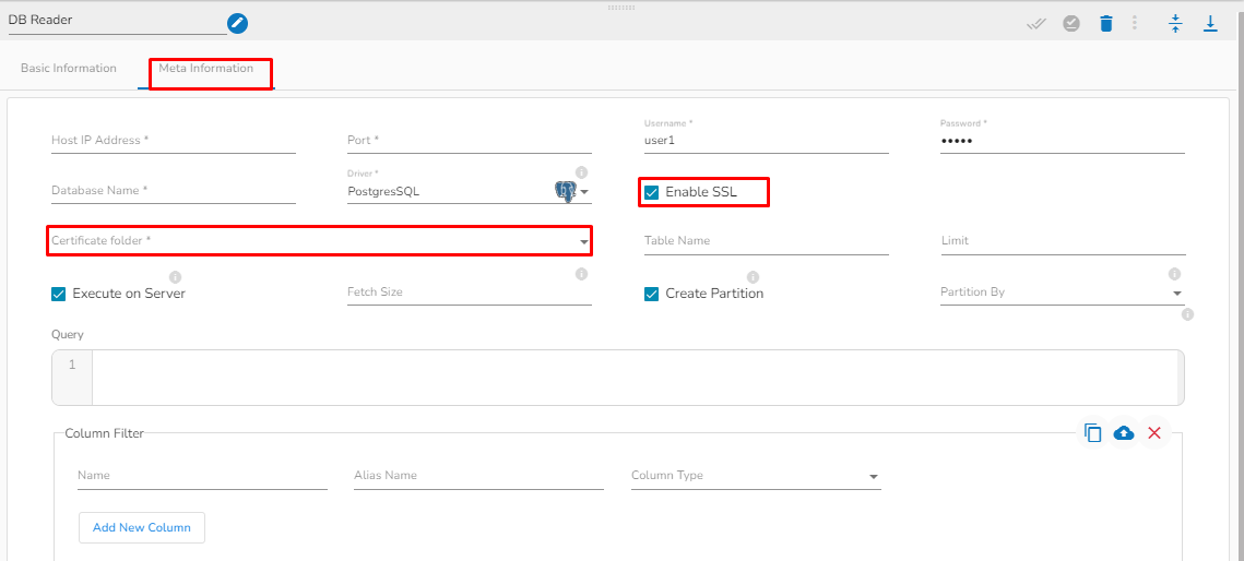 Enable SSL: Check this box to enable SSL for this components. Enable SSL feature in DB reader component will appear only for two(2) drivers: PostgreSQL and ClickHouse.