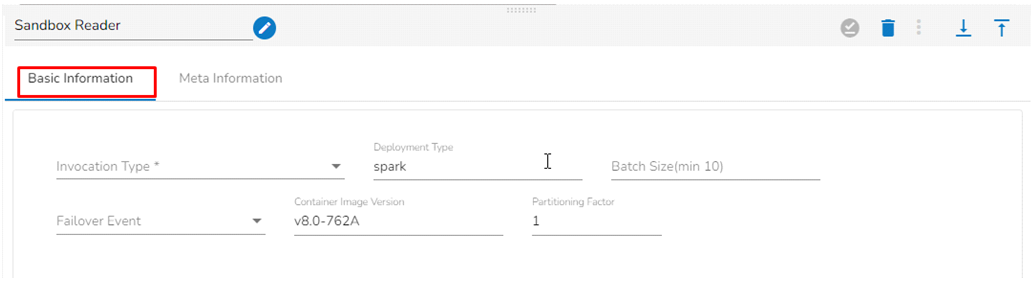 Open the Meta Information tab and fill in all the connection-specific details for the Sandbox Reader.