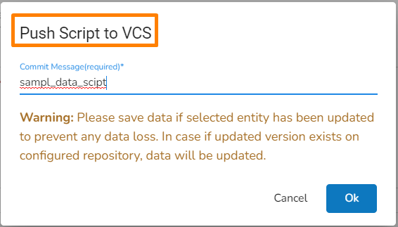 The Push Script to VCS dialog box opens.