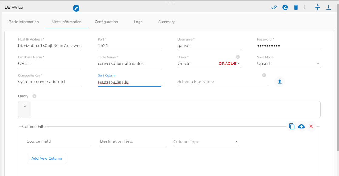 Configuring the DB Writer Component as a part of Pipeline Workflow