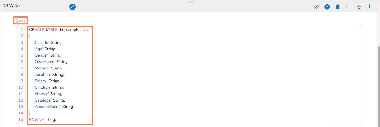 <figure><img src="https://content.gitbook.com/content/q2i9CKCFbySxr6jRoJfA/blobs/q8XU17hLvQ9bfJGzXMRj/MicrosoftTeams-image%20(68).png" alt=""><figcaption><p>Writing Create table query in the query field of DB writer.</p></figcaption></figure>