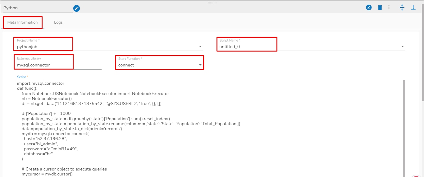 Once the Python Job is created, follow the below given steps to configure the Meta Information tab of the Python Job.