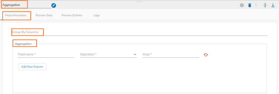 * **Group By Columns**(\*): Provide a name for the group by column.