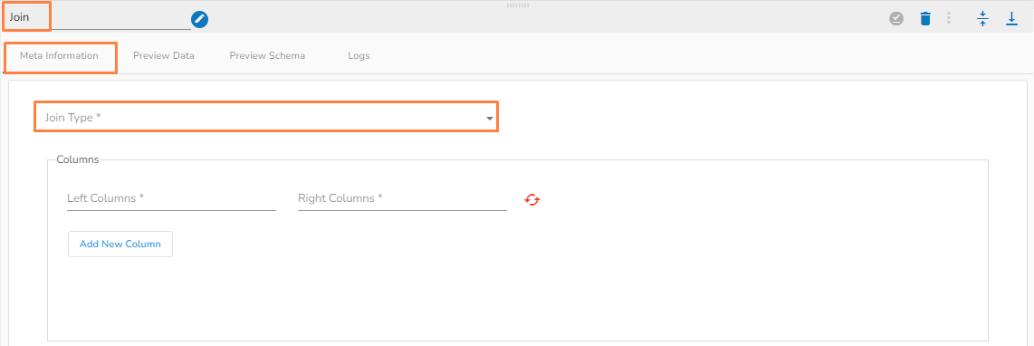 * **Join Type** (\*): Provides drop-down menu to choose a Join type.